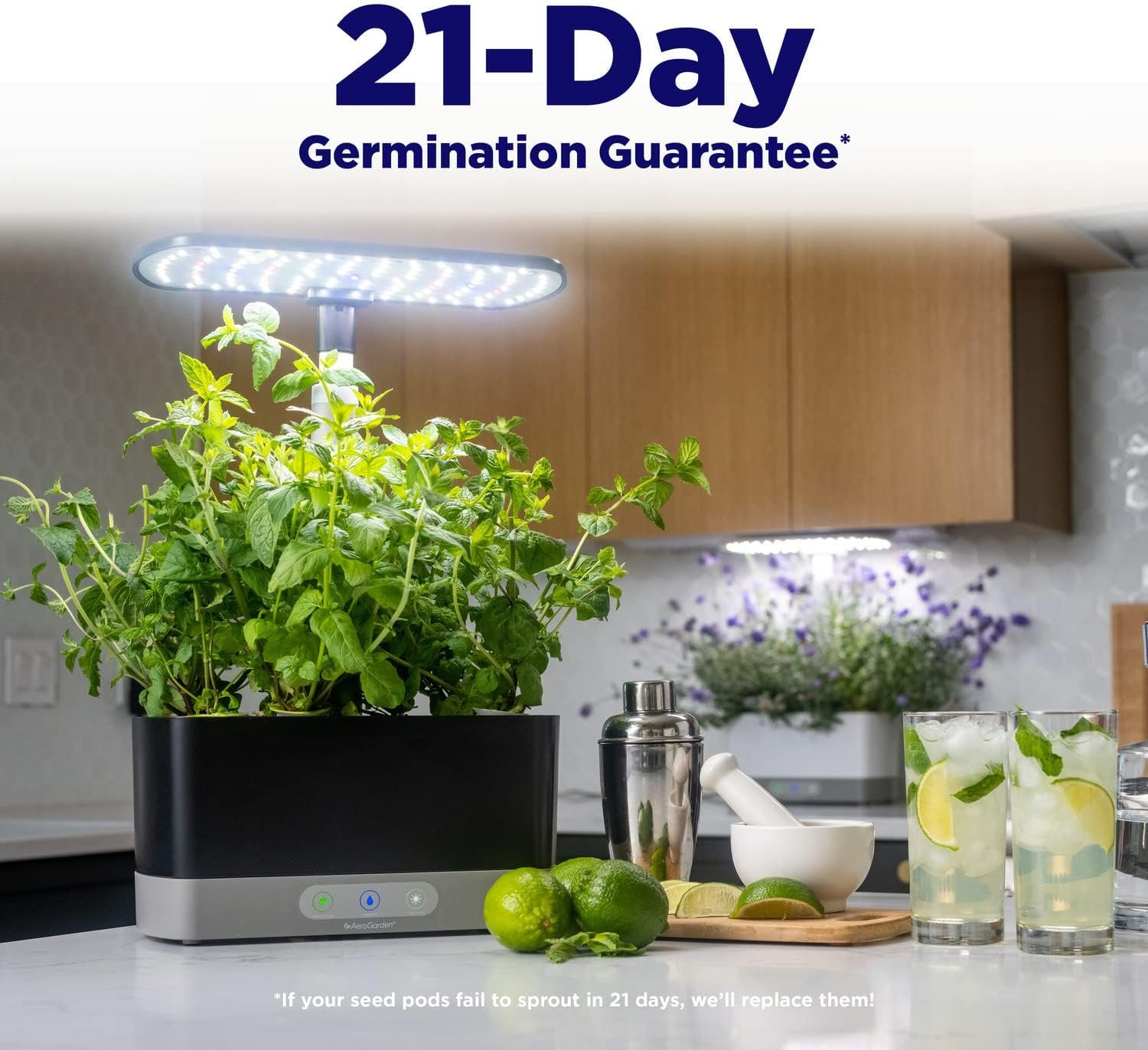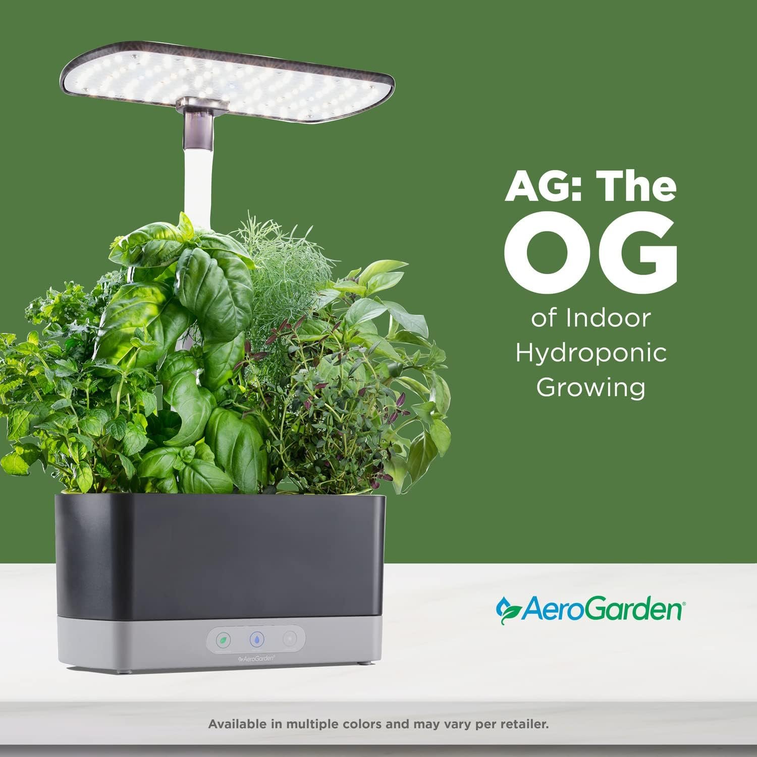 AeroGarden Harvest XL – Sistema hidropónico de jardín interior con luz LED de cultivo y kit de hierbas, capacidad para hasta 6 vainas, color negro