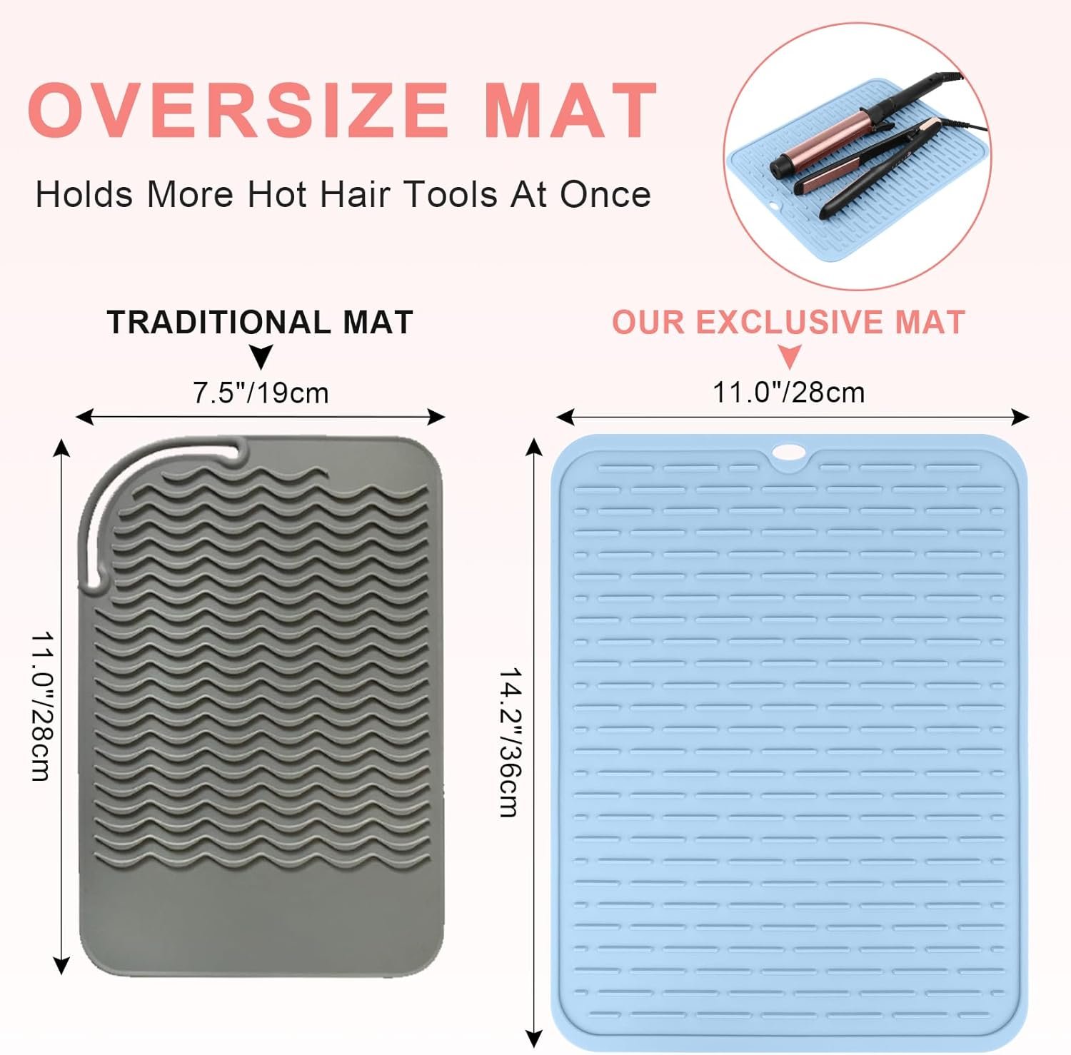 Alfombrilla de herramientas para el cabello de gran tamaño: mide 14.2 x 11.0 pulgadas, nuestra alfombrilla extragrande ofrece un amplio espacio para descansar de forma segura múltiples herramientas de peinado simultáneamente. Ideal para el hogar, viajes, gimnasio y peluquería