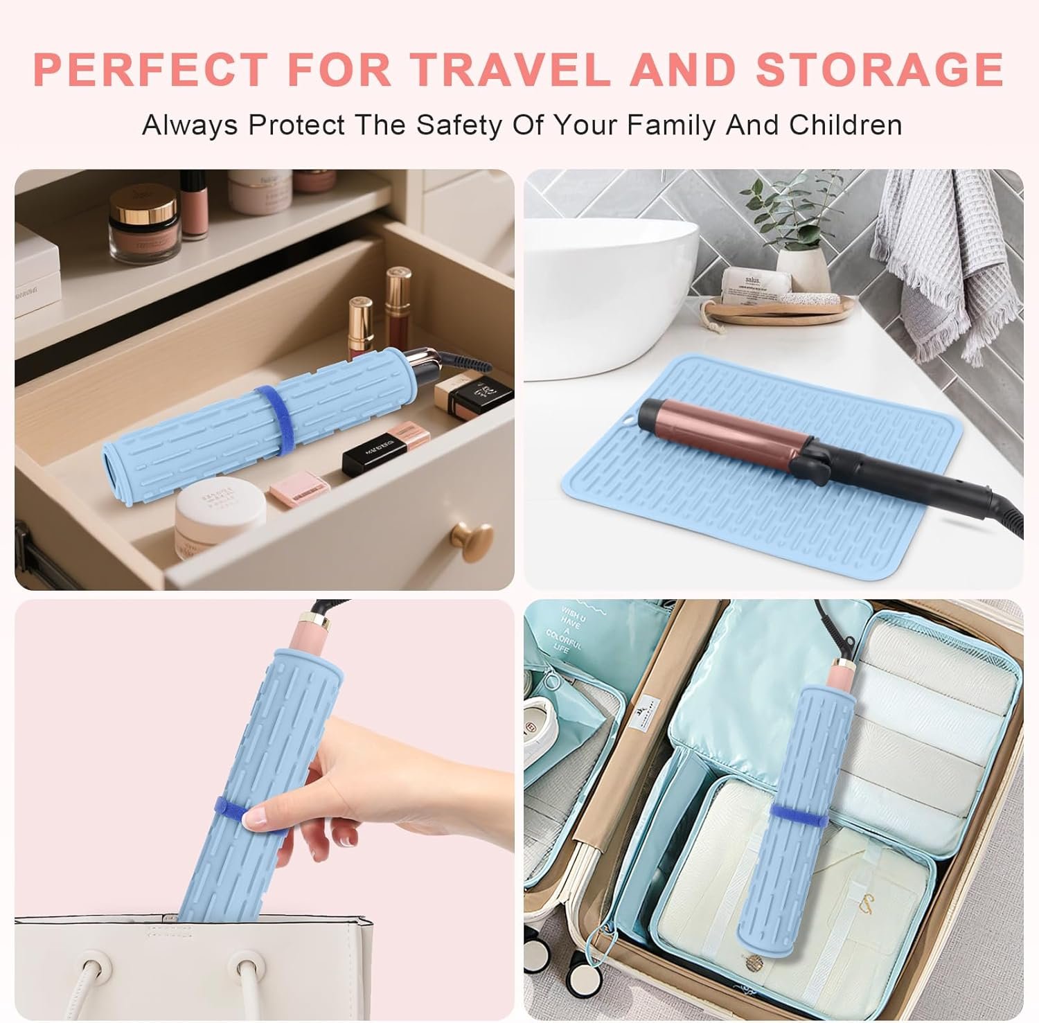 Conveniente para transportar y almacenar: Con un peso de solo 6.7 onzas, esta alfombrilla de rizador es increíblemente fácil de enrollar y almacenar. Deslízalo en tu bolsa de viaje, casillero de gimnasio o bolso para protección contra el calor en cualquier lugar donde quieras peinar tu cabello