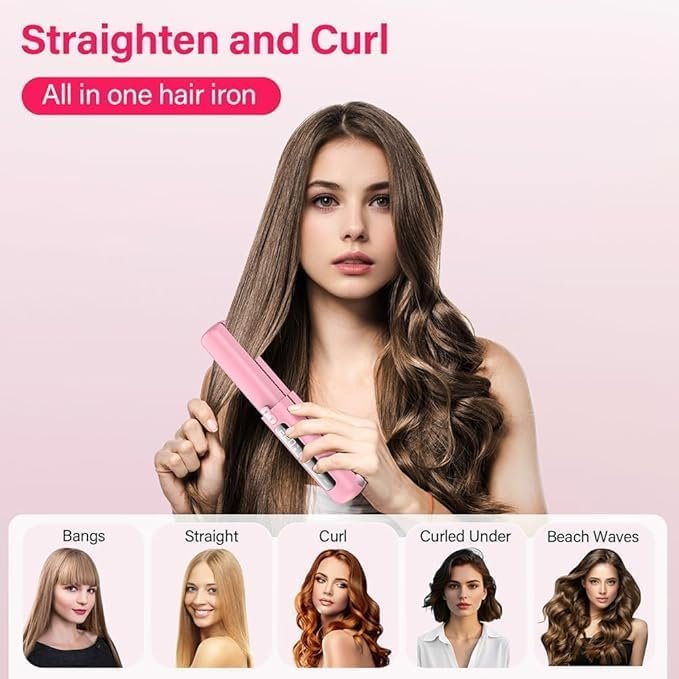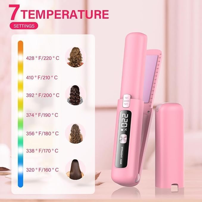 Alisador y rizador de pelo inalámbrico 2 en 1, mini ligero y pequeño recargable por USB con batería de 4500 mAh, 10s de calentamiento rápido, plancha plana de cerámica portátil para viajes rosa