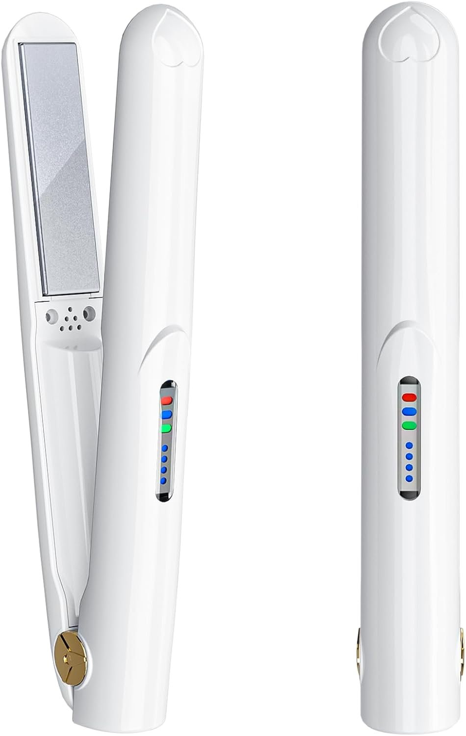 Alisador y rizador de pelo inalámbrico 2 en 1, plancha plana de cerámica, mini inalámbrico portátil de viaje, herramientas calientes, rizado recto para mujeres y hombres, recargable por USB con bolsa