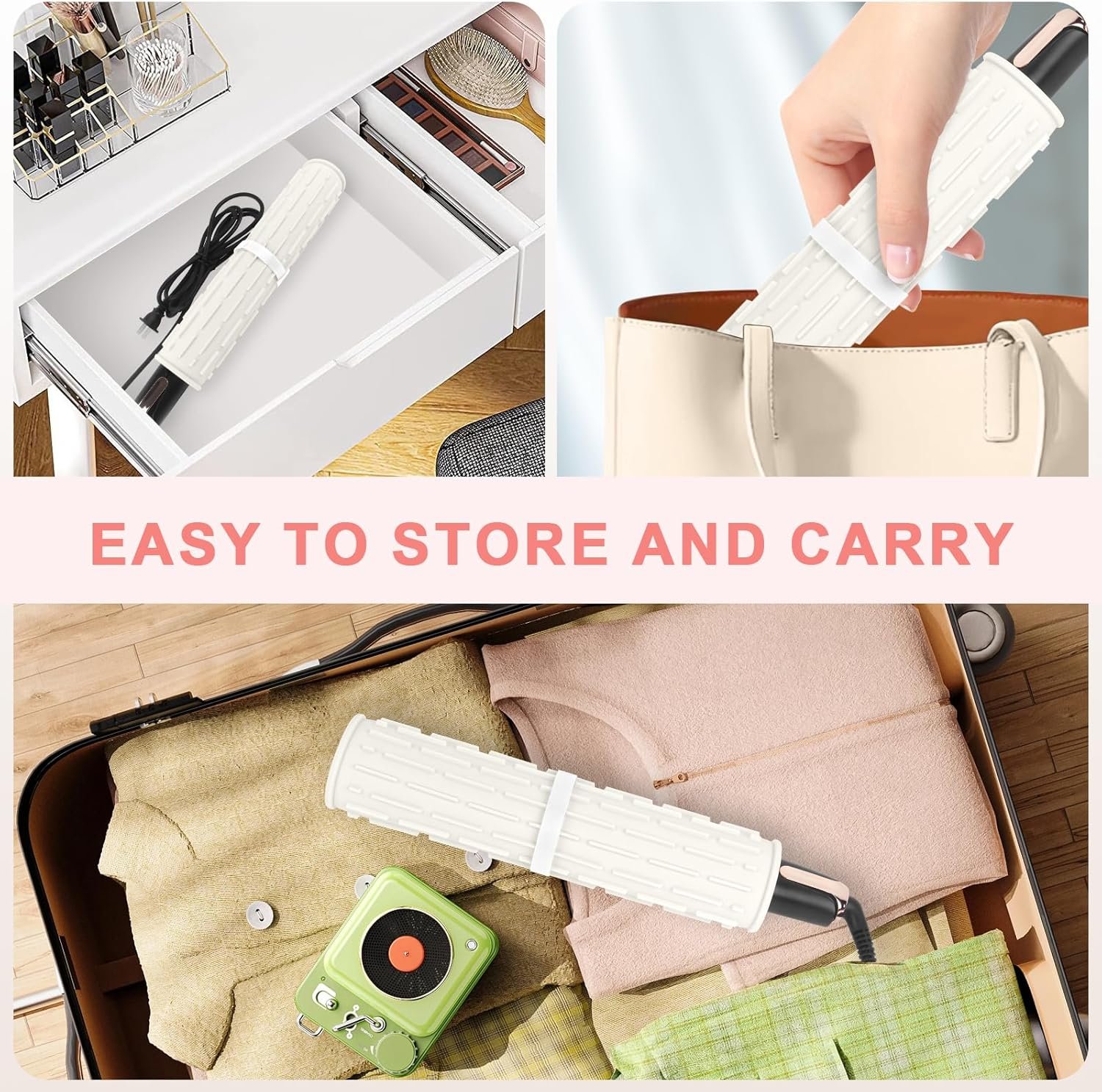 Funda de envoltura portátil: puedes envolver fácilmente la herramienta de plancha de pelo y asegurarla con velcro para guardarla en un cajón o bolsa para un transporte seguro sin esperar a que se enfríe; ideal para el hogar, tocador, viajes, gimnasio y peluquería