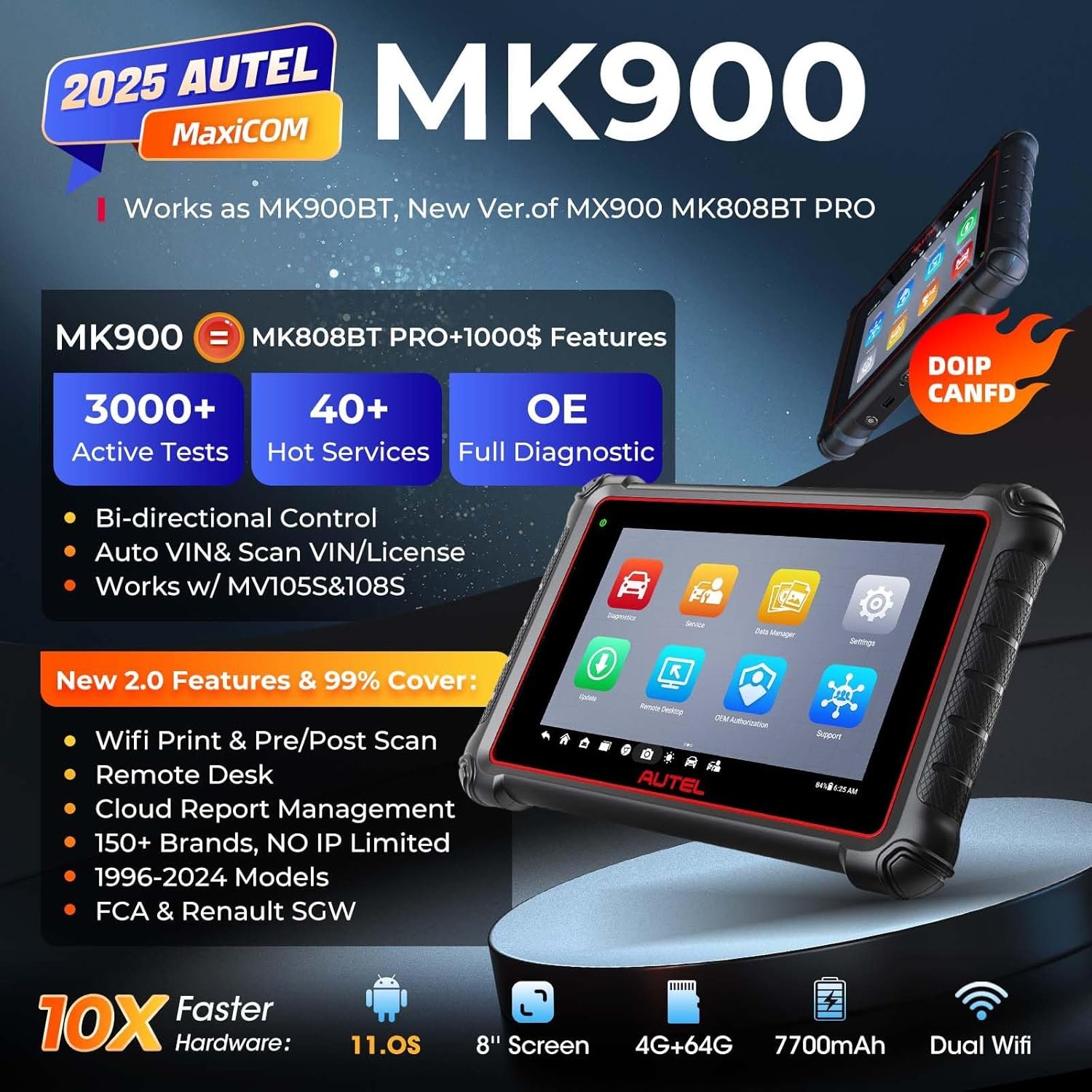 🥇【2025 Autel Flagship MK900, 2.0 versión más reciente de MX900 MK808BT PRO MK808S MX808S MK900BT】¿Quieres un escáner de diagnóstico potente, duradero y asequible? ¡Autel MK900 puede hacerlo! Hasta MK808S MX900 MK808BT PRO, igual que MK900BT y funciones potentes EXTRA añadidas valor de más de 2000 dólares. Más de 40 servicios = MS Ultra MS908S PRO II Elite II, pruebas activas, más de 150 marcas, diagnóstico completo ✅NEW CAN FD y DOIP✅Auto VIN&Auto Scan2.0✅Escaneo VIN/Licencia✅FCA y SGW✅Impresión Wi-Fi✅ Escaneo previo y posterior ✅Escritorio remoto✅Sin IP limitada derrota MX900. 👍Interfaz más grande de 8 pulgadas fácil de usar y 👍2.0 de funcionamiento suave, 👍batería de 7000 mAh de trabajo durante todo el día todas las series MK808S MX808S solo 5000mAh, Autel MK900 se ha convertido en la primera opción para el 99% de los talleres y bricolaje
