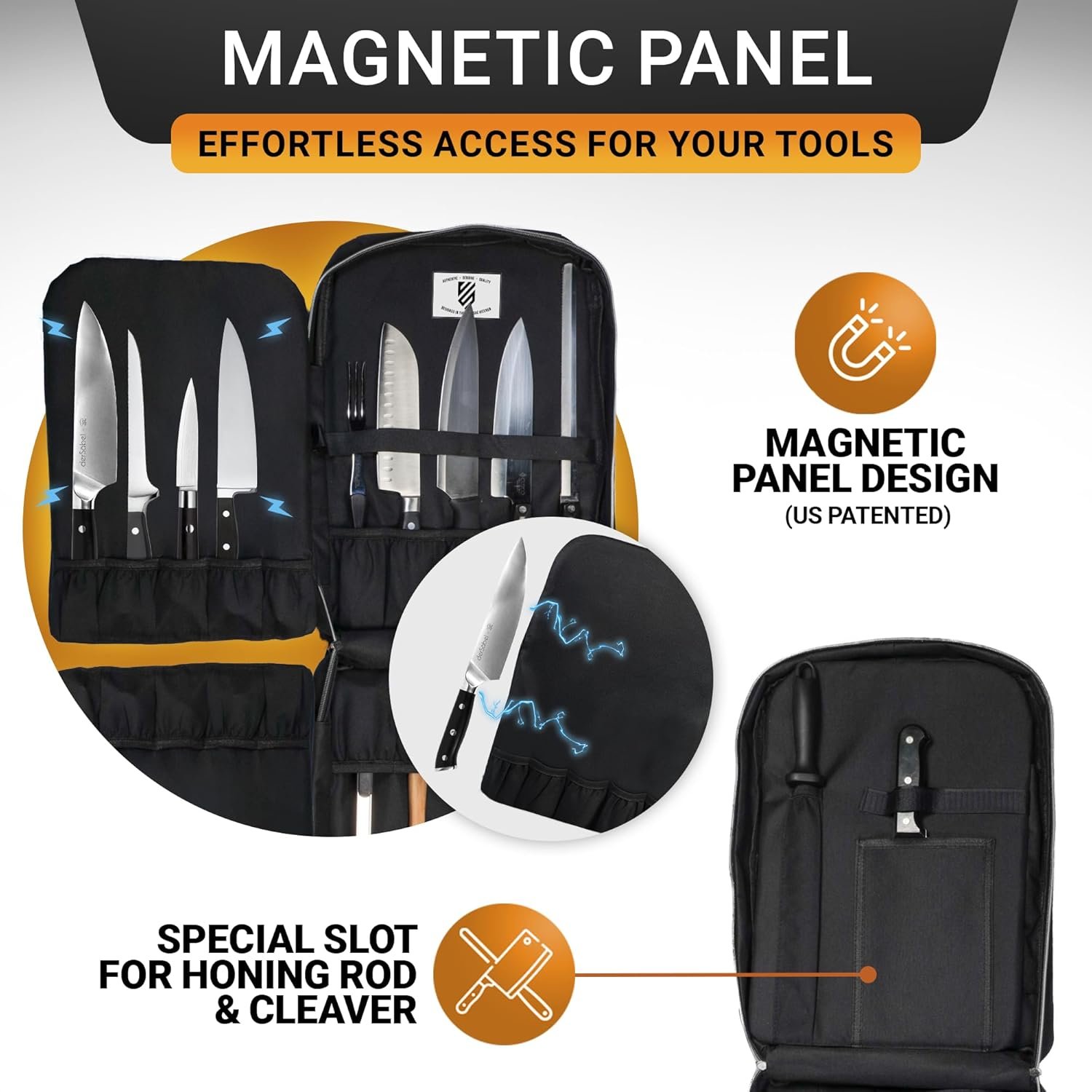 • Diseño de giro de cabeza: 86 lo viejo y obtén esta nueva mochila para cuchillos. Chef Sac está inspirado en el chef y diseñado para crear el mejor estuche de transporte de cuchillos. Diseñado para culinary Mavericks y chefs en movimiento que buscan una bolsa de cuchillos de viaje con un excelente sentido del estilo. Las cremalleras reforzadas extra gruesas, doble costura y resistentes ayudan a durar años de desgaste en la cocina. Queremos ayudarlo a preparar excelentes platos en la cocina y causar una impresión única cuando está al aire libre.