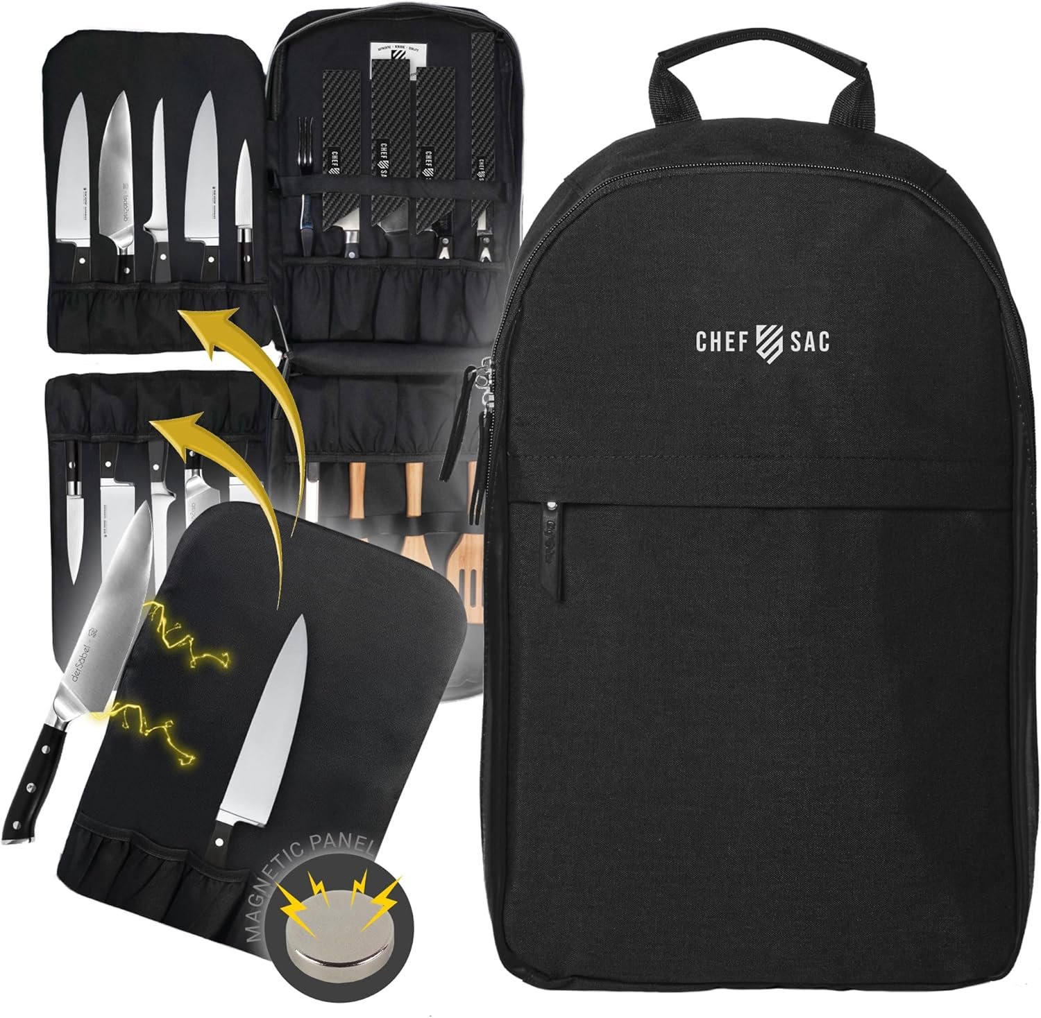 • Estructura extremadamente duradera y sólida: disfruta de años de uso diario y obtén el valor de tu dinero con estas bolsas de cuchillos portátiles y bien construidas para chefs. Para una máxima durabilidad, las bolsas para cuchillos de chef Chef Sac están hechas de tela de grado industrial 600D de alta calidad. La doble costura reforzada ofrece protección adicional contra desgarros. Resistente para cualquier cocina comercial o catering privado. Esta mochila de chef viene con un bolsillo trasero oculto para guardar una tableta, cuaderno o tu libro de recetas secreto.