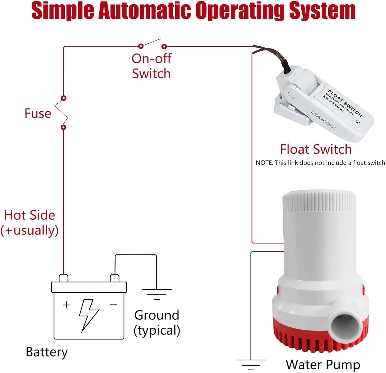 Fácil de usar: esta bomba de achique sumergible de 12 V proporciona un funcionamiento sin complicaciones y tranquilidad para todas las aventuras de navegación. Viene con un cable de 6 pies para una fácil instalación y uso.