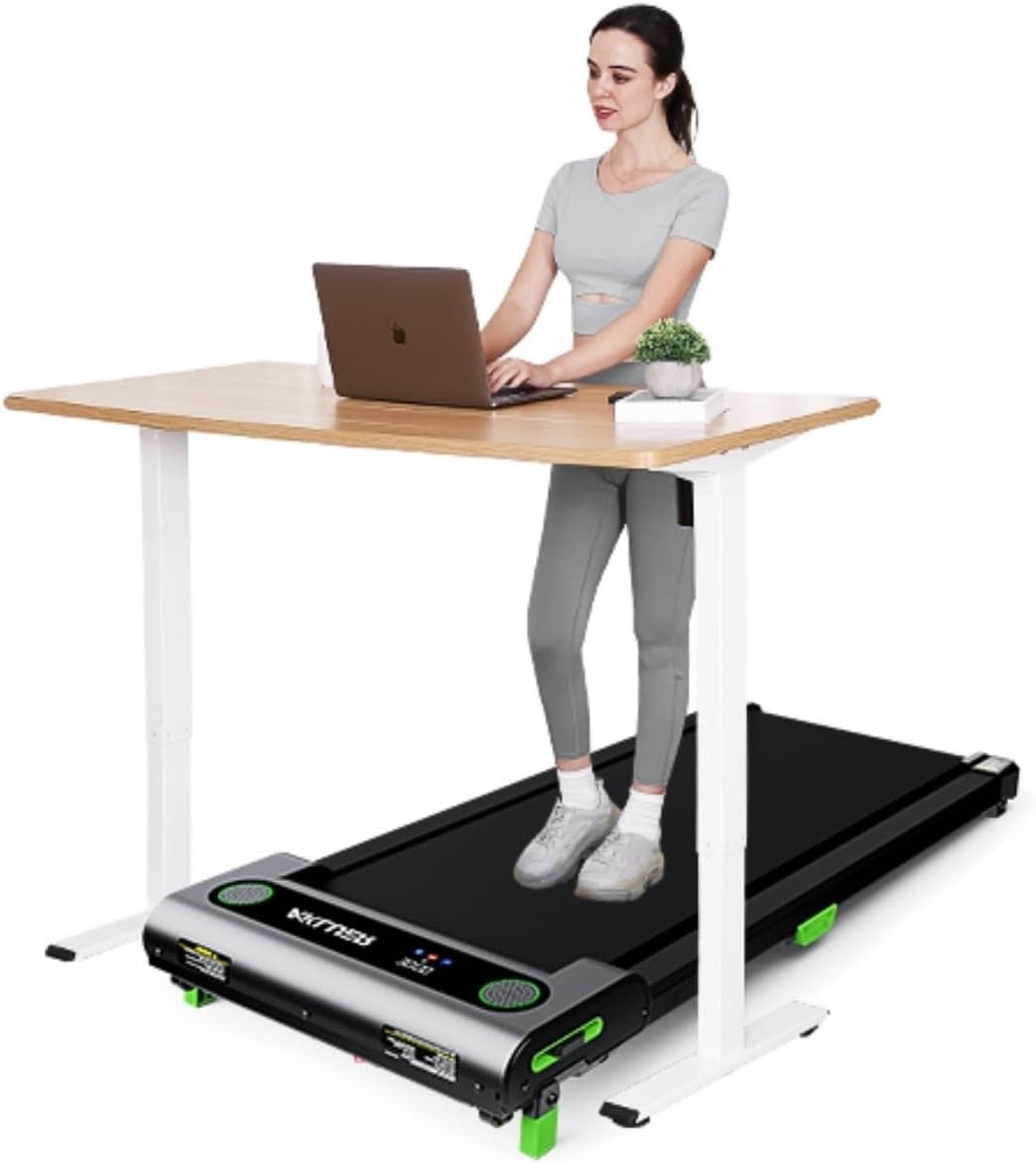 Potente motor estable y silencioso: la caminadora de escritorio AKLUER está equipada con un motor mejorado de 2.5 HP que ofrece un rendimiento potente y silencioso, emitiendo menos de 45 dB de ruido, proporcionando una experiencia de funcionamiento suave y perfecta incluso a altas velocidades. Con un rango de velocidad de 0.6 a 4 MPH, puedes cambiar libremente entre caminar y correr para satisfacer tus diferentes necesidades de ejercicio, con una capacidad máxima de peso de 330 libras, asegurando tu satisfacción durante los entrenamientos