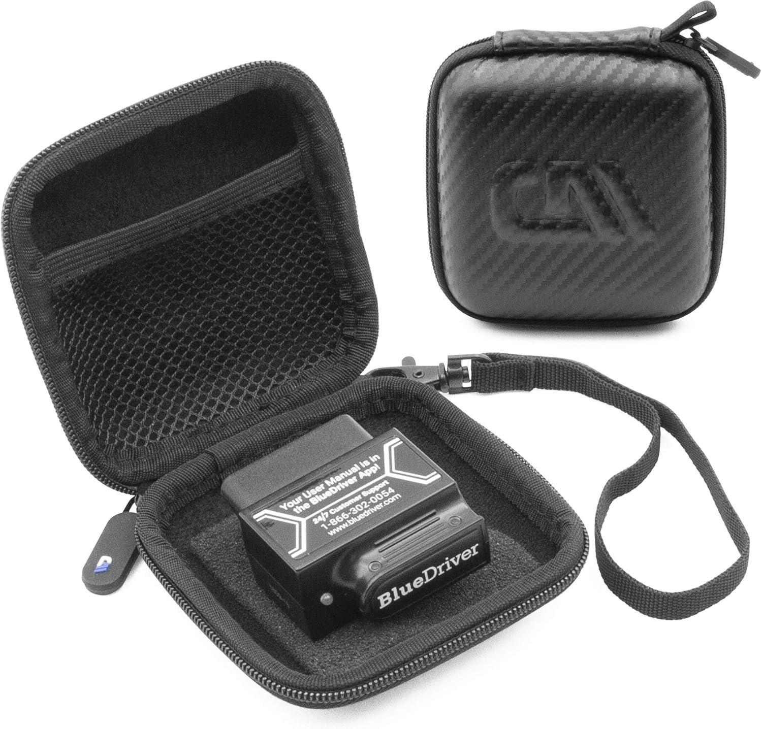 CASEMATIX Mini funda de transporte para coche y auto, compatible con BlueDriver Bluetooth profesional OBDII OBD2 herramienta de escaneo Monitor