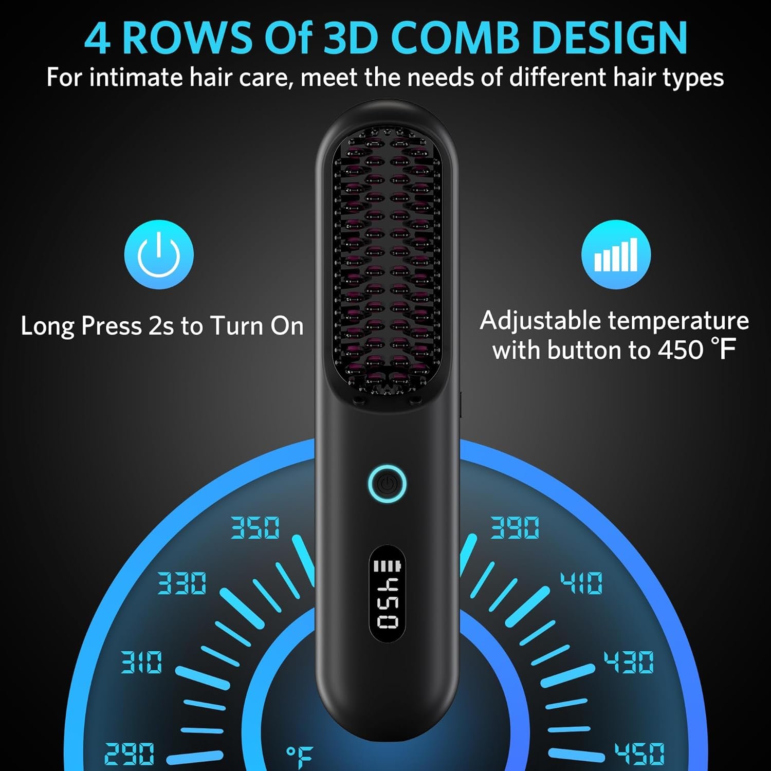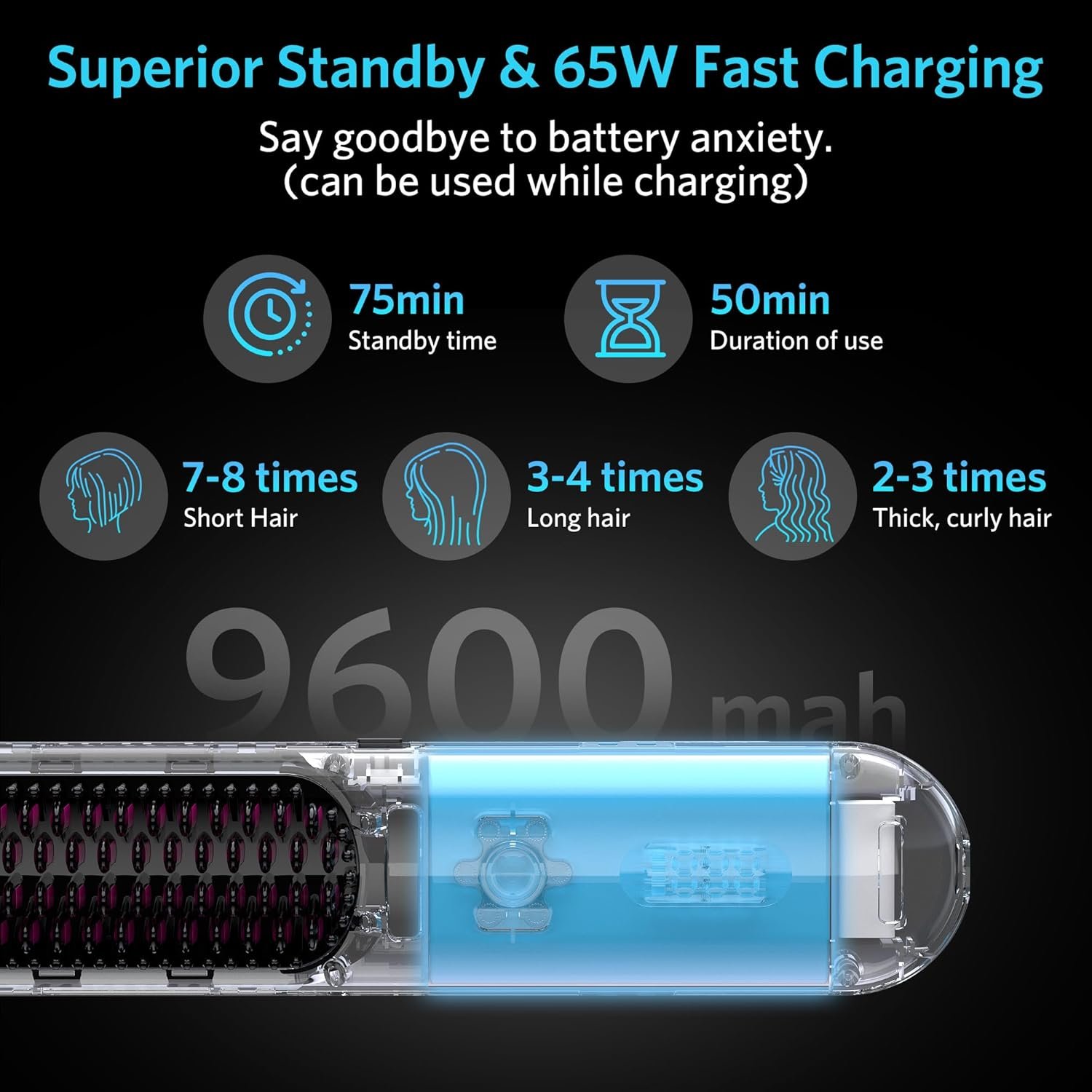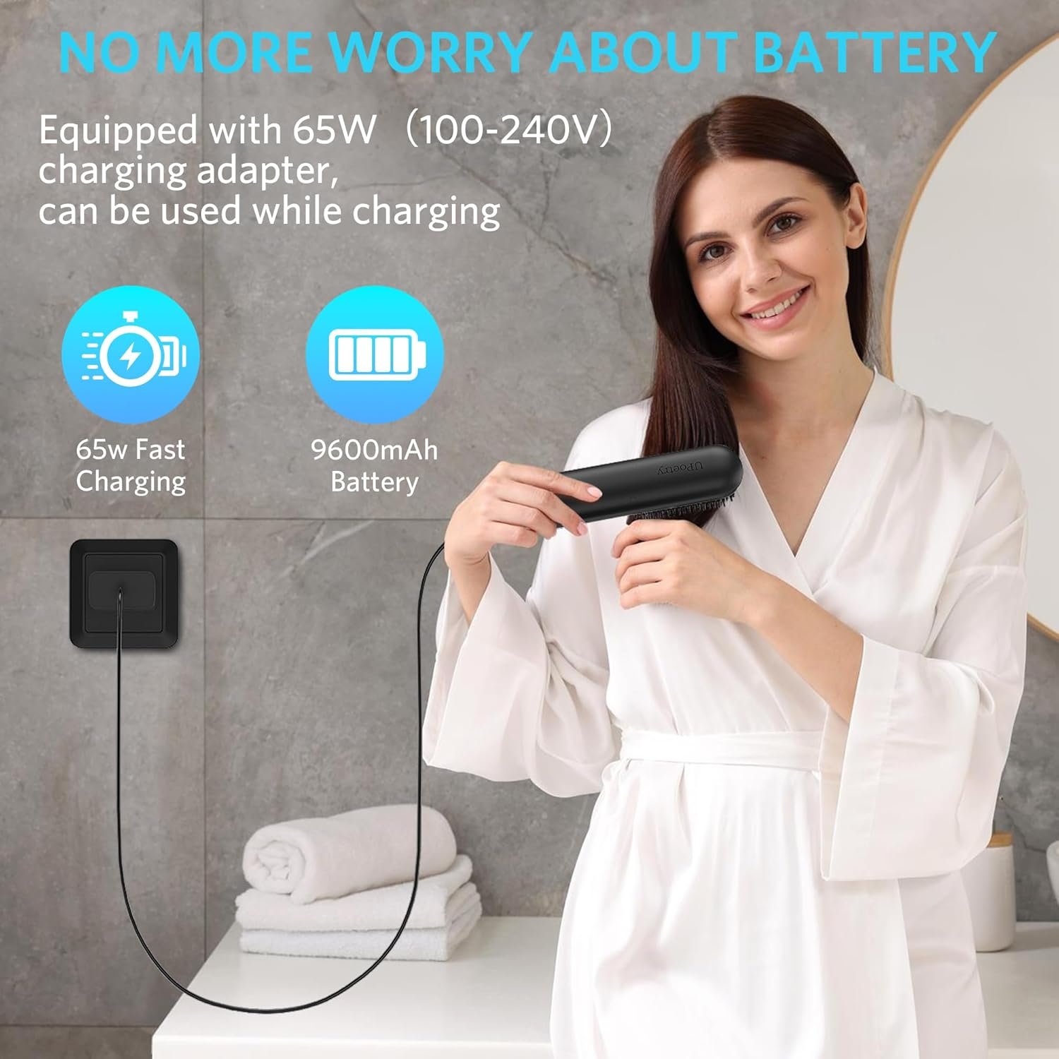 Cepillo alisador de cabello inalámbrico, peine caliente iónico portátil con cargador rápido de 65 W, mini cepillo de alisado de cabello de viaje para mujeres, ligero para el hogar o estilo
