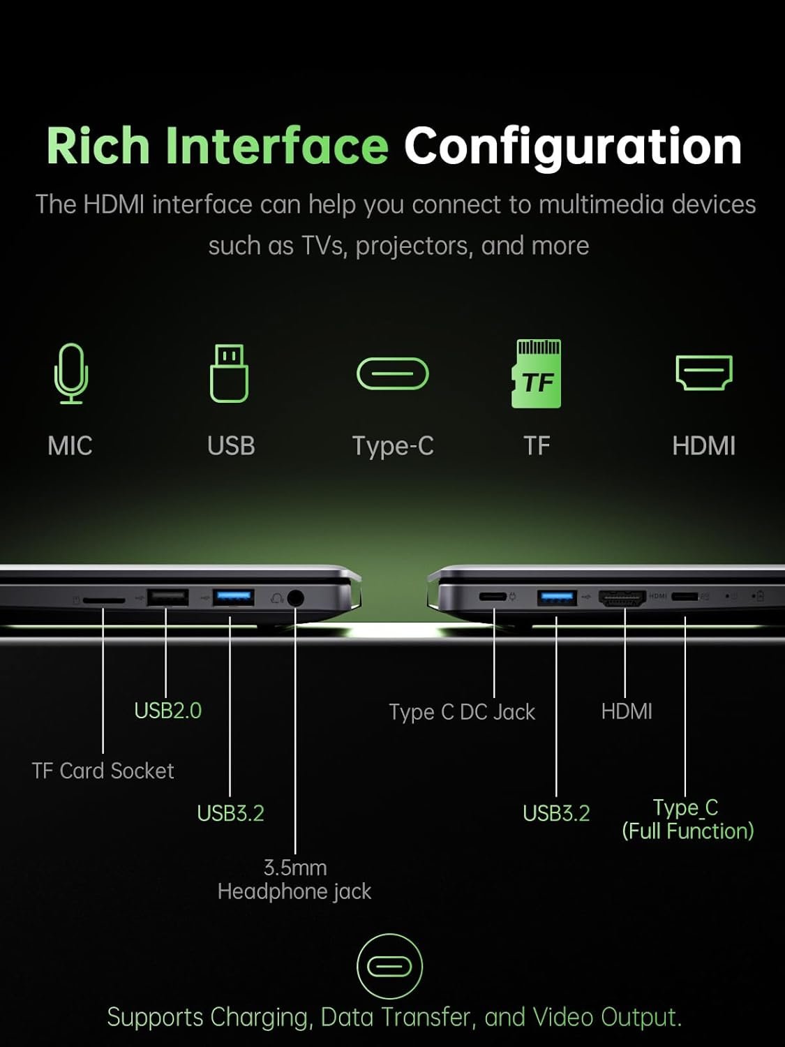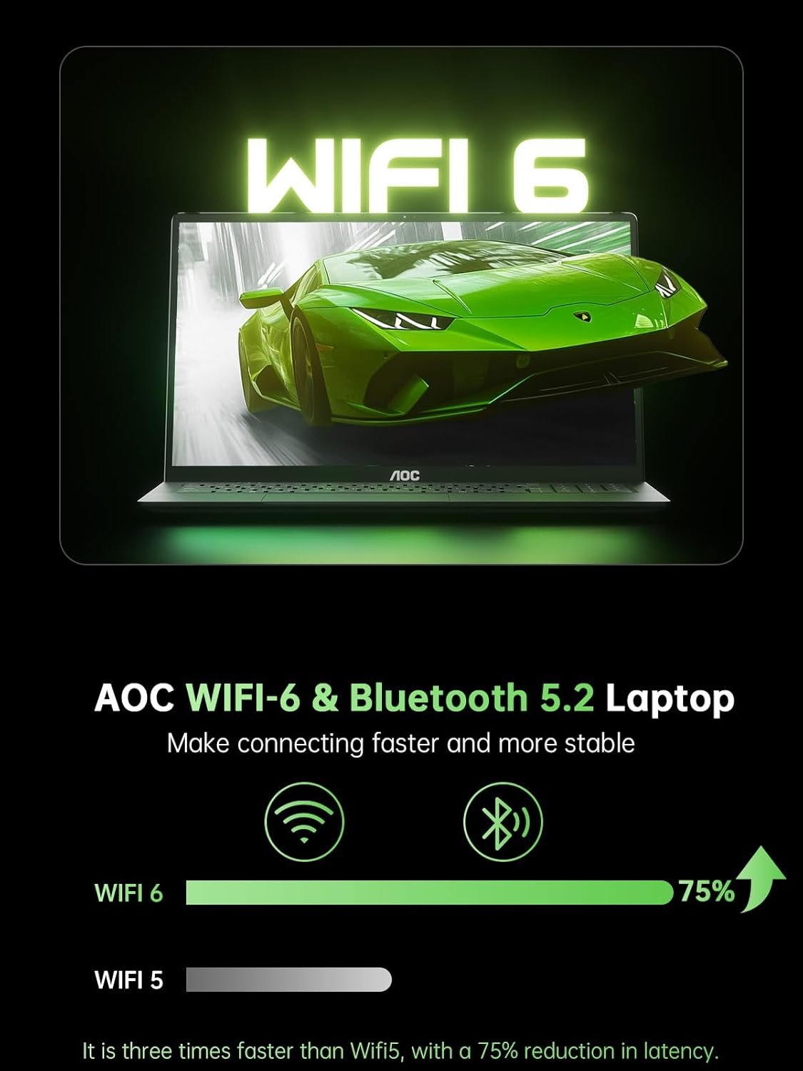 Puertos para todos tus accesorios: la laptop para juegos AOC Light está equipada con una amplia gama de puertos para satisfacer todas tus necesidades: una cámara web, dos puertos USB 3.2, HDMI, un tipo C de función completa, un conector para auriculares/altavoz/salida de línea de 0.138 in, una ranura para tarjeta TF y un conector CC tipo C. Con Wi-Fi 6hasta 3 veces más rápido que Wi-Fi 5. , disfrutarás de velocidades de Internet ultrarrápidas. El teclado retroiluminado no solo se ve bien, sino que profundiza tu experiencia, convirtiendo cada sesión en un viaje épico.