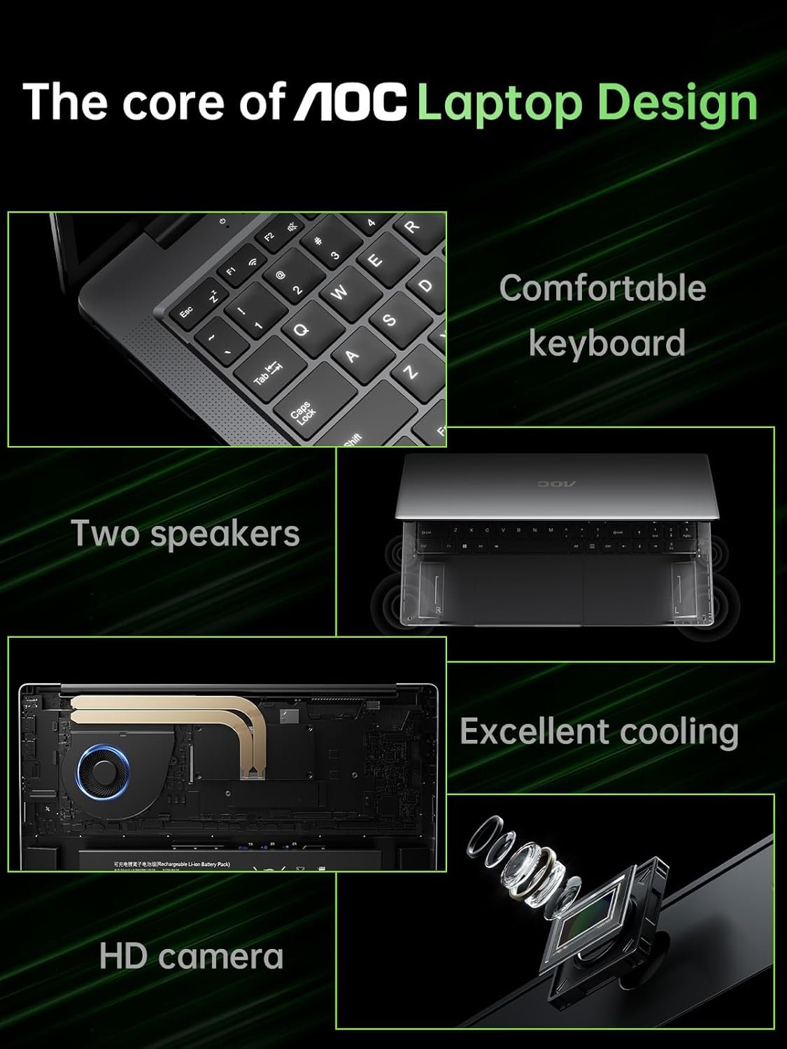 Portátil multiusos: la computadora portátil AOC está precargada con el sistema Windows 11 y cuenta con una batería de 58.38 Wh para hasta 8 horas de duración de la batería. Su diseño de bisagra permite una capacidad de colocación plana de 180°. El perfil delgado se desliza fácilmente en una mochila, y el cuerpo de metal duradero está diseñado para soportar la presión. Ideal para el trabajo, clases en línea o . Las computadoras portátiles para juegos AOC Light se someten a una prueba de máquina de 7 x 24 horas antes del envío. Disfruta del uso preocupado con un servicio al cliente de 1 año y las 24 horas.
