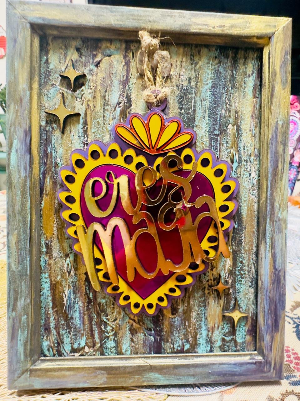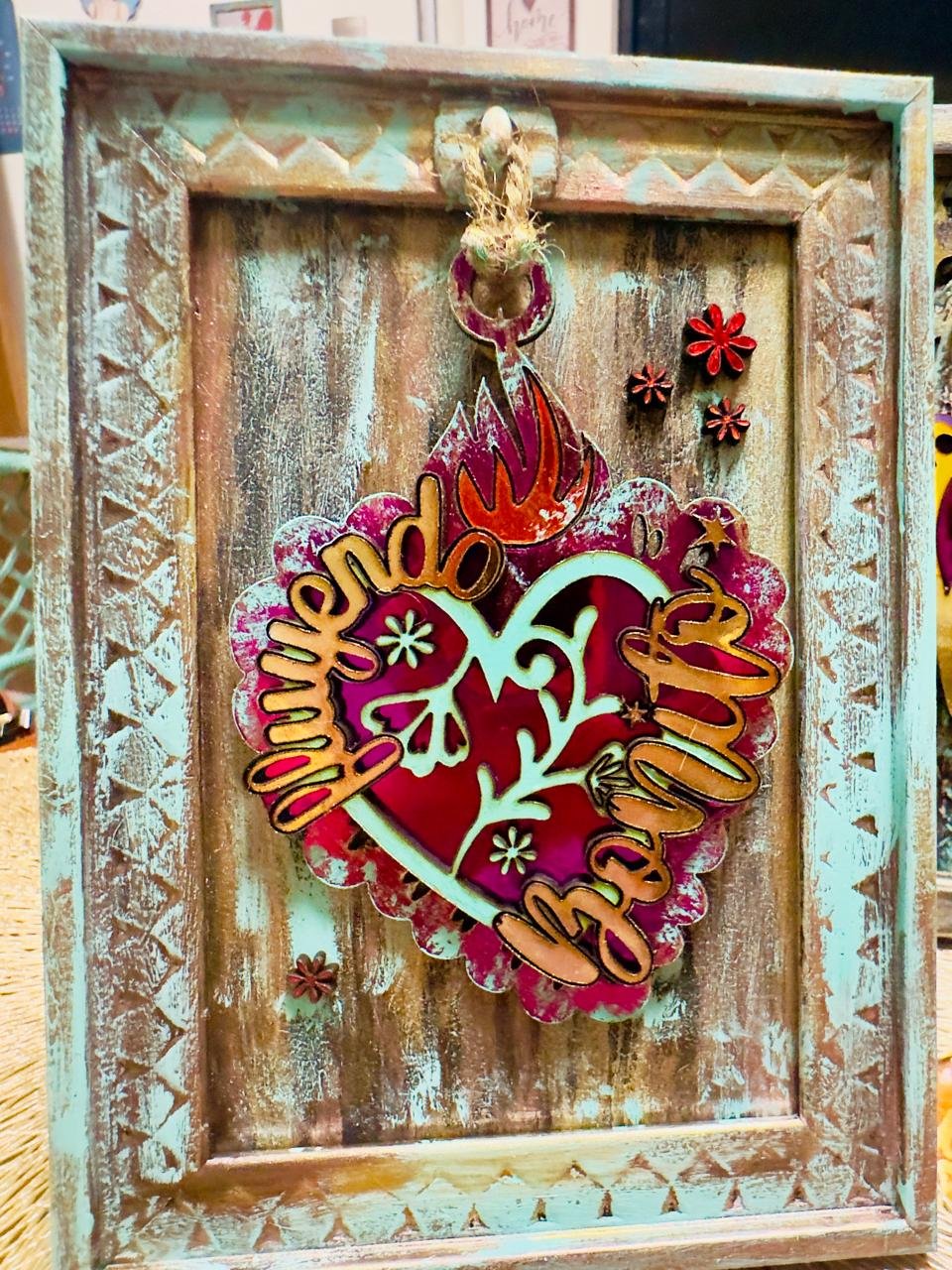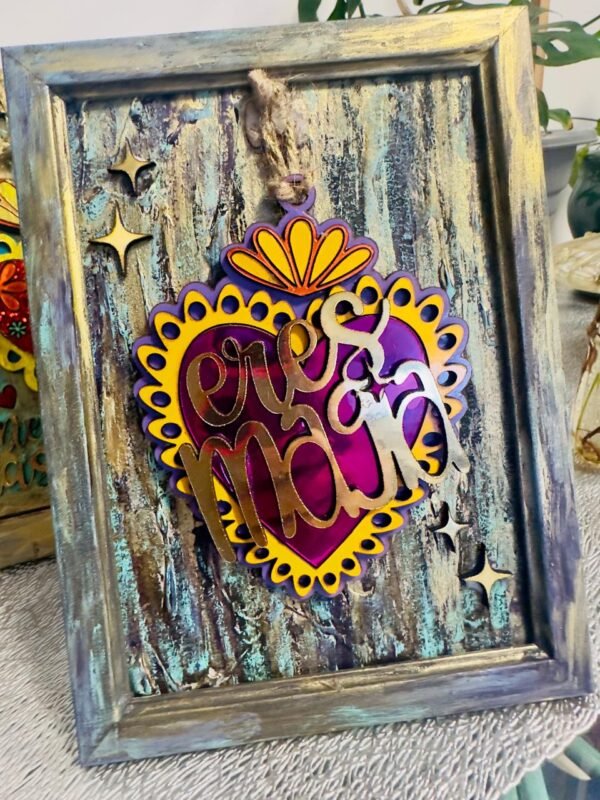 «DeCorazón». Corazón trabajado en marco porta retrato. 20x24cm