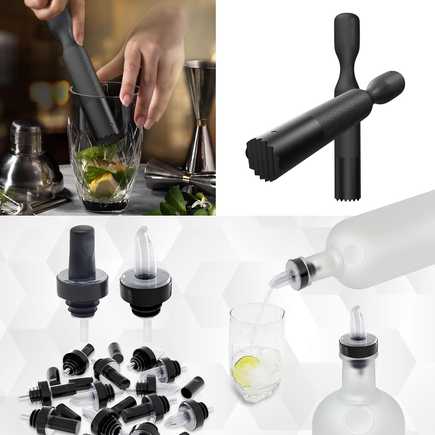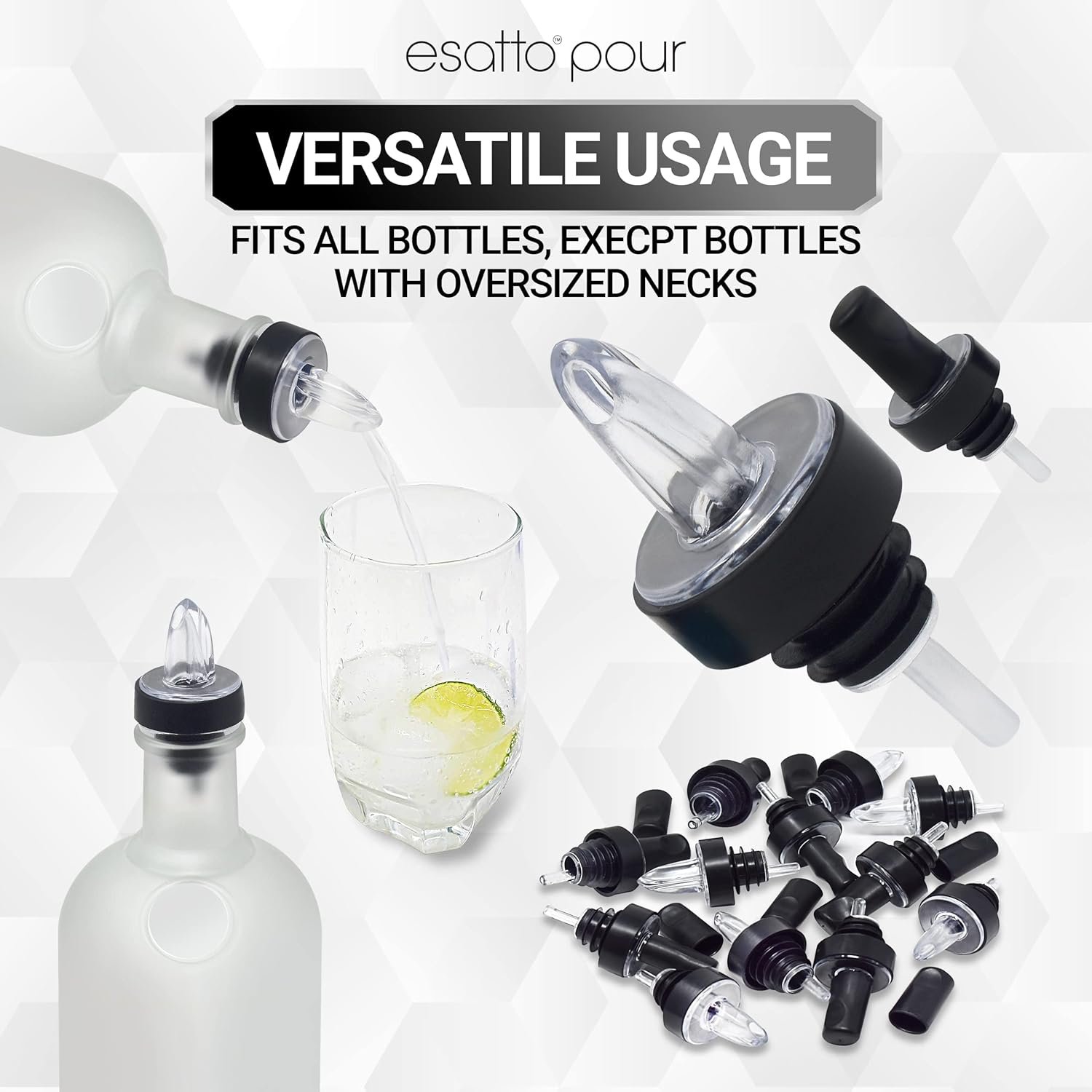 Vertedores: este juego también viene con 12 vertedores y 12 cubiertas de vertedor. Vierta con precisión y nunca desperdicie otra gota de sus botellas. Estos vertedores significan que no hay fugas, sin óxido y años de uso, ya que puedes lavarlos en agua tibia para devolverlos a su forma original. Si bien estos vertedores no se ajustan a botellas con cuellos de gran tamaño, se adaptan a la mayoría de las otras botellas que utiliza en su bar. Cada gota es una oportunidad para ganar, y los vertedores y las cubiertas de polvo aseguran que esta oportunidad obtenga ganancias.