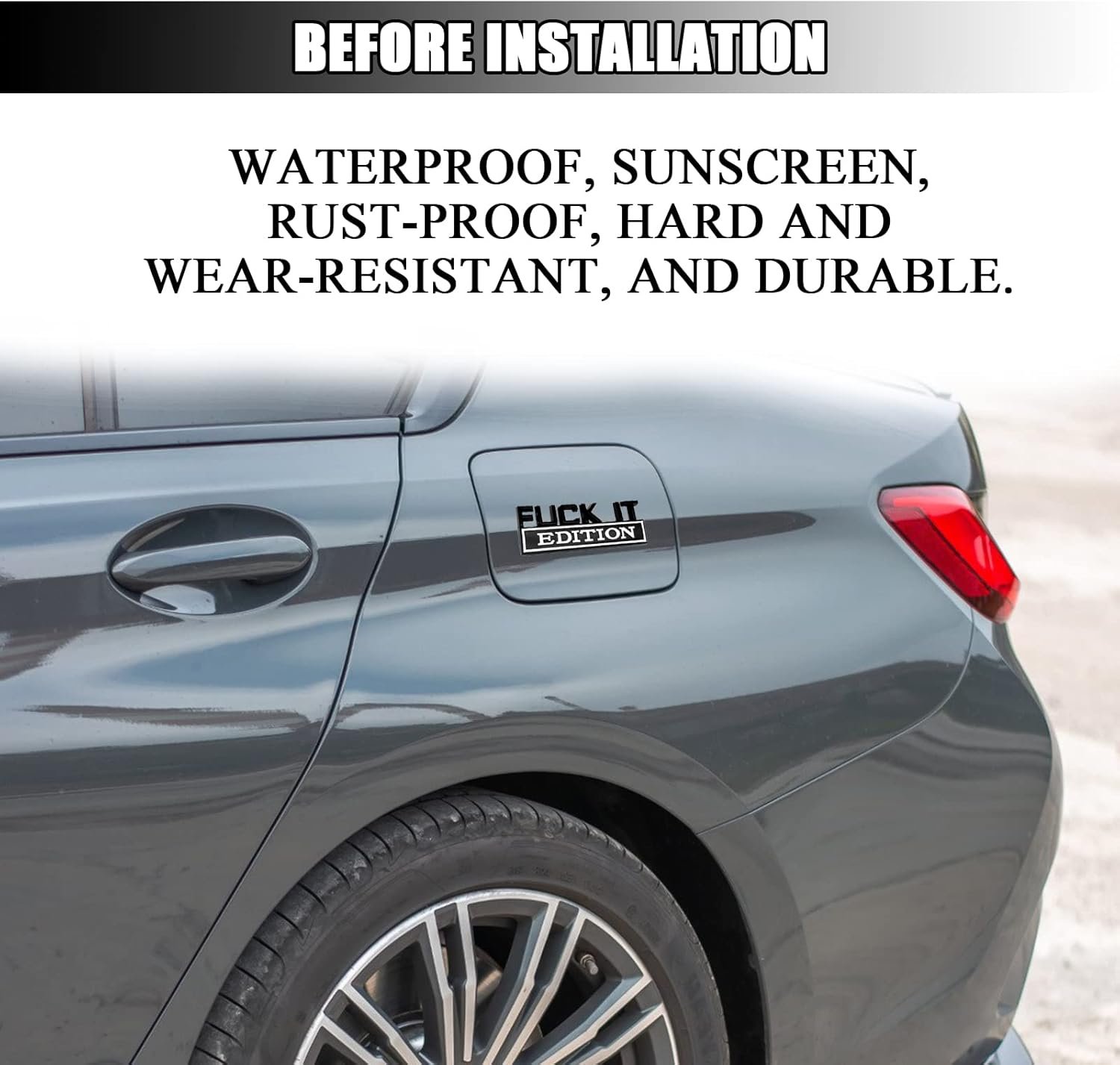 Fácil de instalar: la insignia Fuck IT Edition se puede instalar fácilmente sin necesidad de herramientas, solo tienes que despegar la película protectora y pegarla en la posición correcta. Recuerda limpiar la ubicación objetivo y mantenerla seca antes de la instalación.