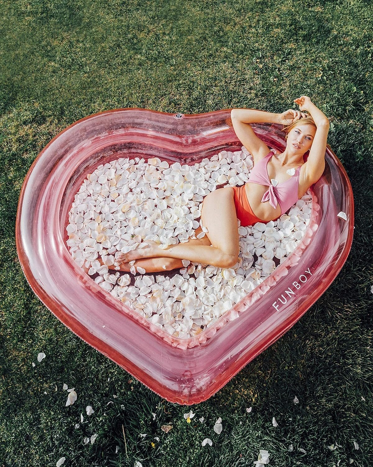 FUNBOY – Piscina inflable gigante de lujo con corazón rosa transparente, diversión durante todo el año para piscinas de pelotas, piscinas, una fiesta de verano en la piscina y la playa