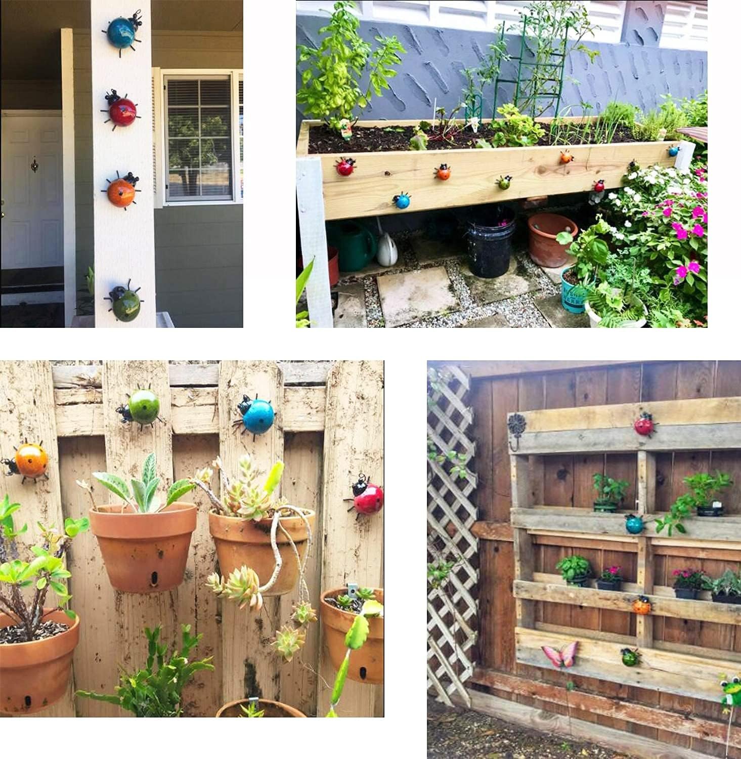 GIFTME 5 Juego de 4 esculturas decorativas de pared de metal para jardín, mariquitas para exteriores