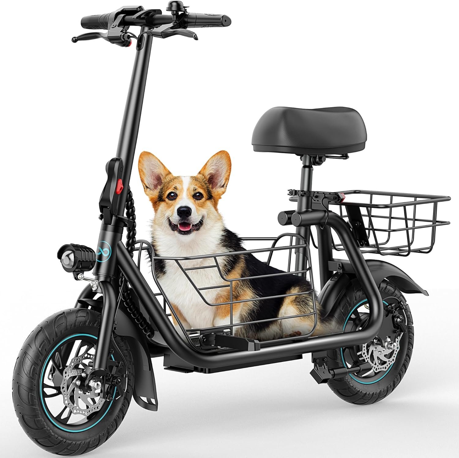 Gyroor Patinete eléctrico para adultos con cesta media grande, motor de 550 W, 18.6 MPH 20 millas de distancia, scooter eléctrico plegable con asiento para mascotas y carga