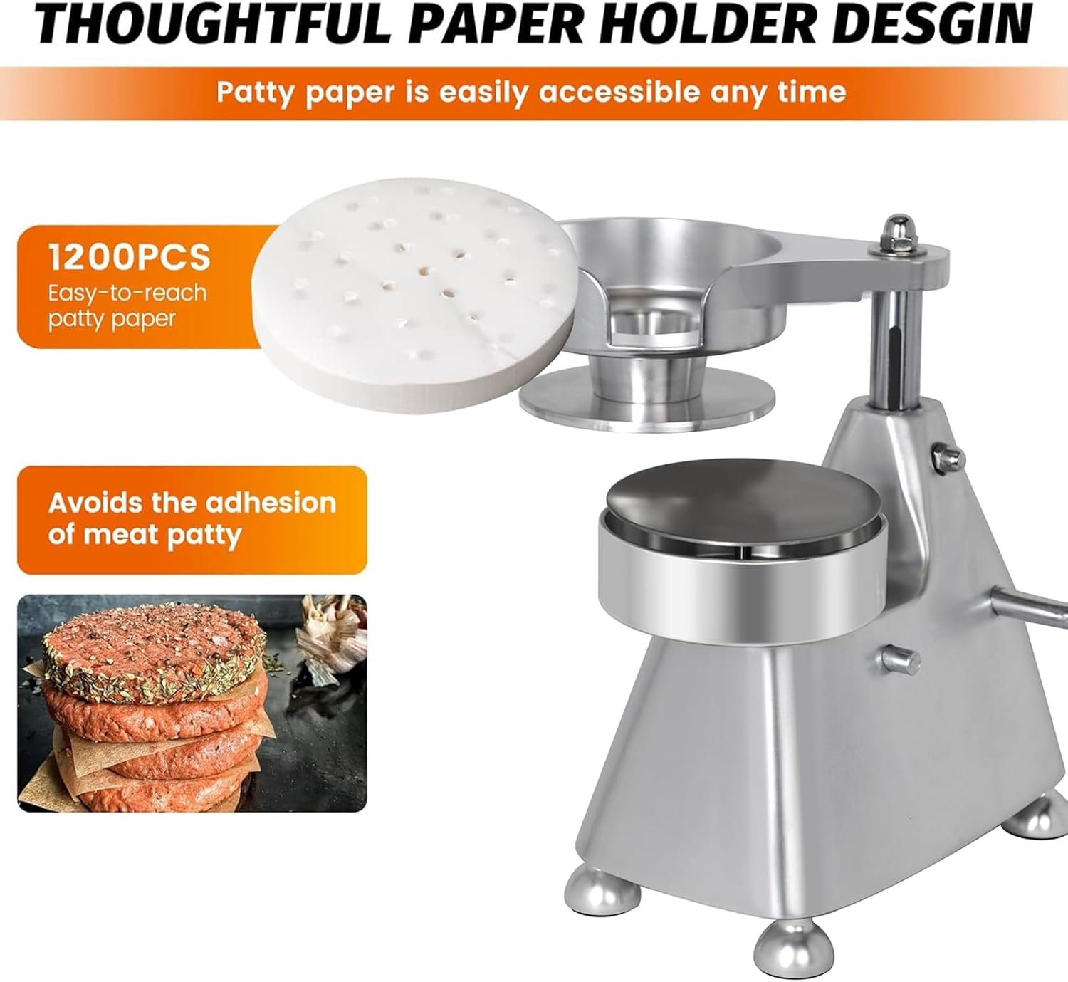 Hakka – Prensa comercial para hamburguesas, herramienta de carne de hamburguesa de acero inoxidable resistente, con tres moldes convertibles y 1200 papeles de hamburguesa, 3.937 in/5.118 in/5.906 in