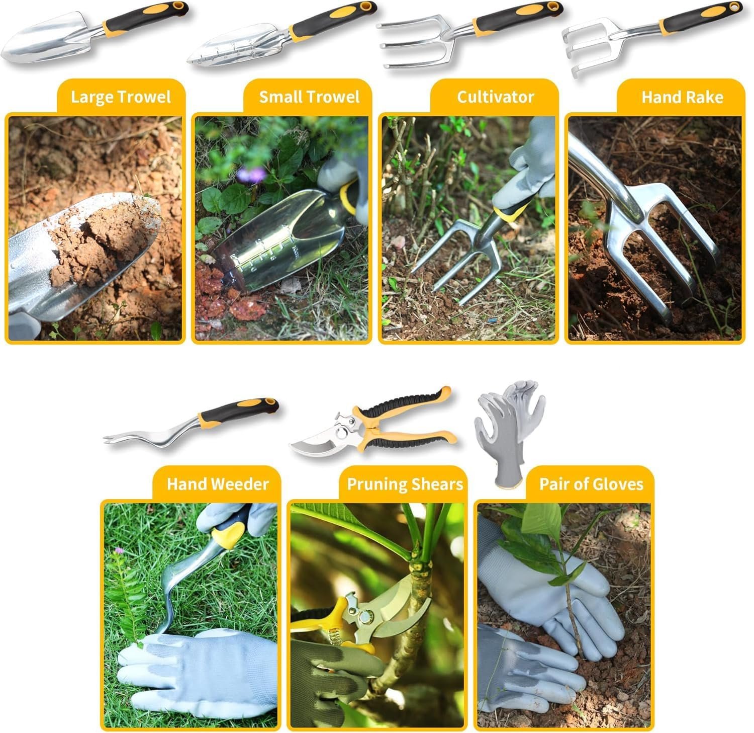 Herramientas de jardín, 8 piezas de herramientas de jardinería resistentes con agarre de goma antideslizante, herramienta de jardín de acero inoxidable, regalos para niños, mujeres, maridos y padres