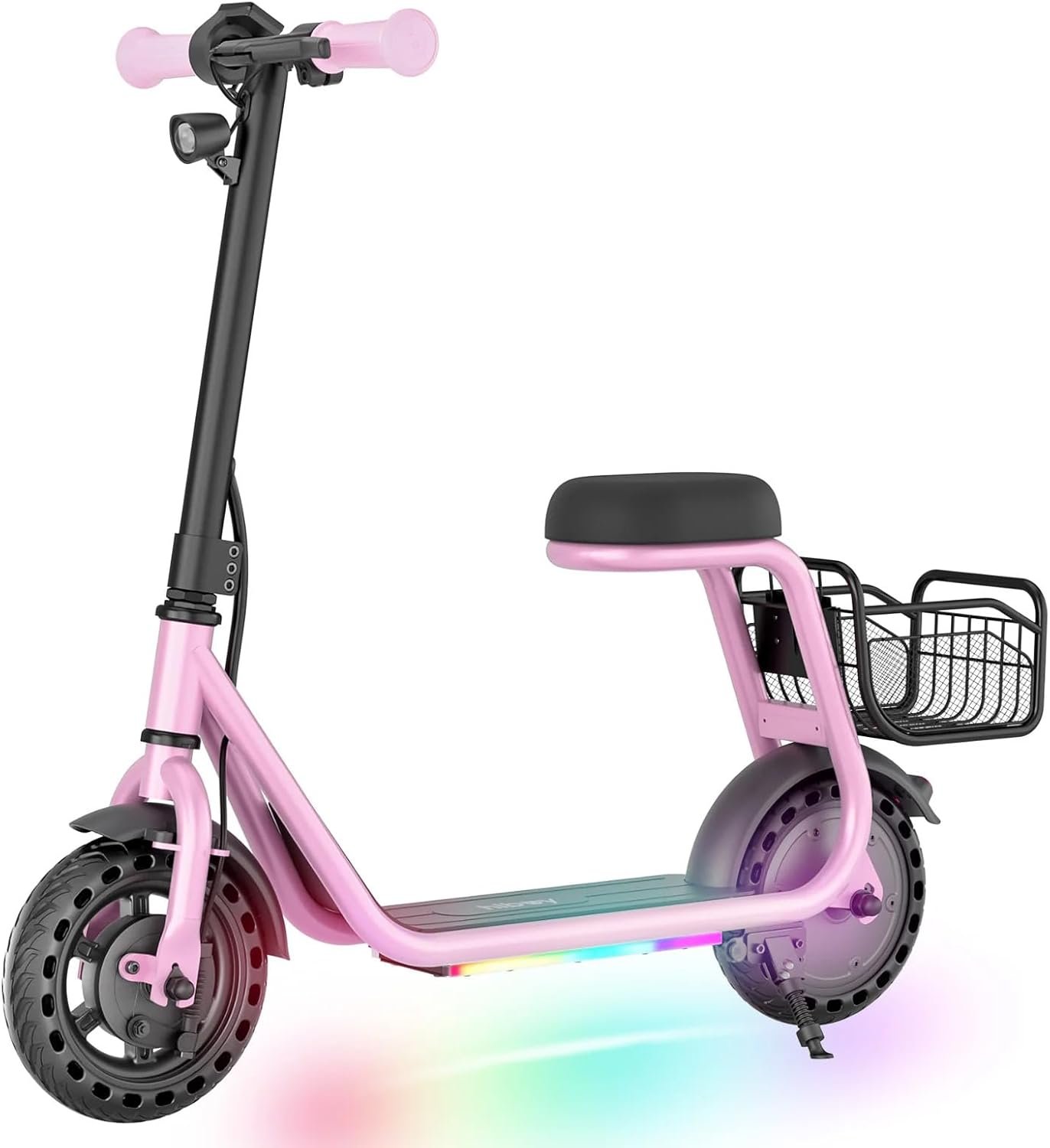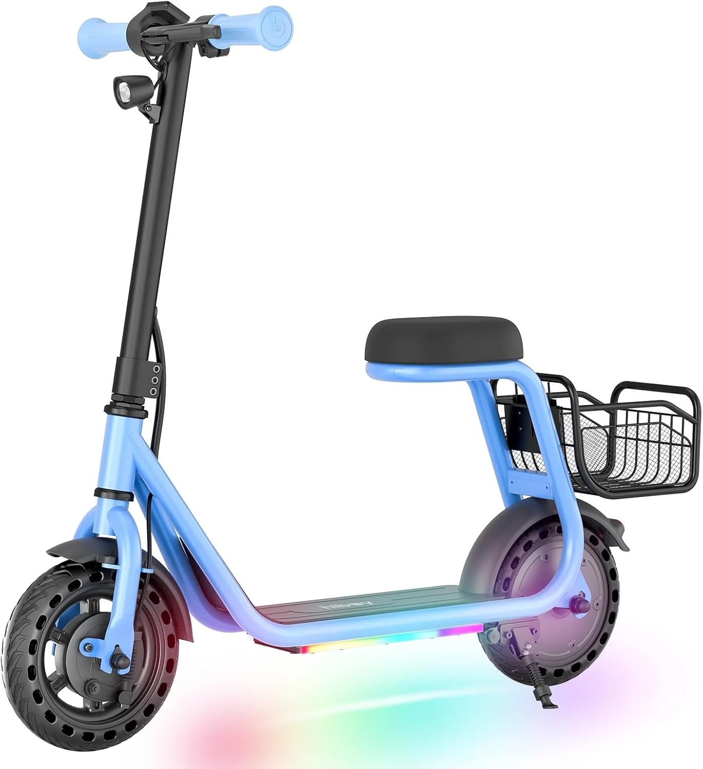 Hiboy Electric Scooter for Kids Ages 4-10, Soft Seat, Neon Lights, 3-Speed Adjustable, Up to 9.3 mph, 5-Mile Range, Safe & Fun Ride for Boys & Girl