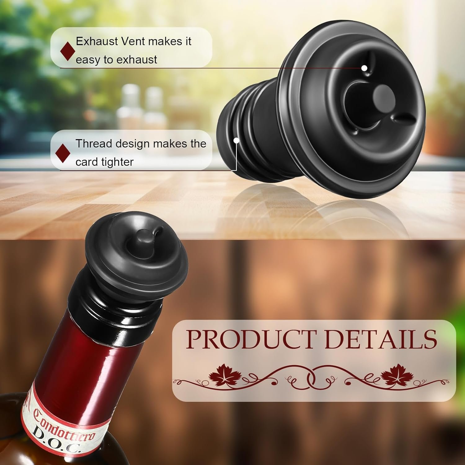 Prácticos tapones para botellas: estos tapones de vacío resellables para bombas de vino están diseñados para bombas de vacío de vino bombas no incluidas, que junto con las bombas de vacío pueden eliminar fácilmente el aire de las botellas, para que el vino se pueda almacenar durante más tiempo y mantenerse fresco