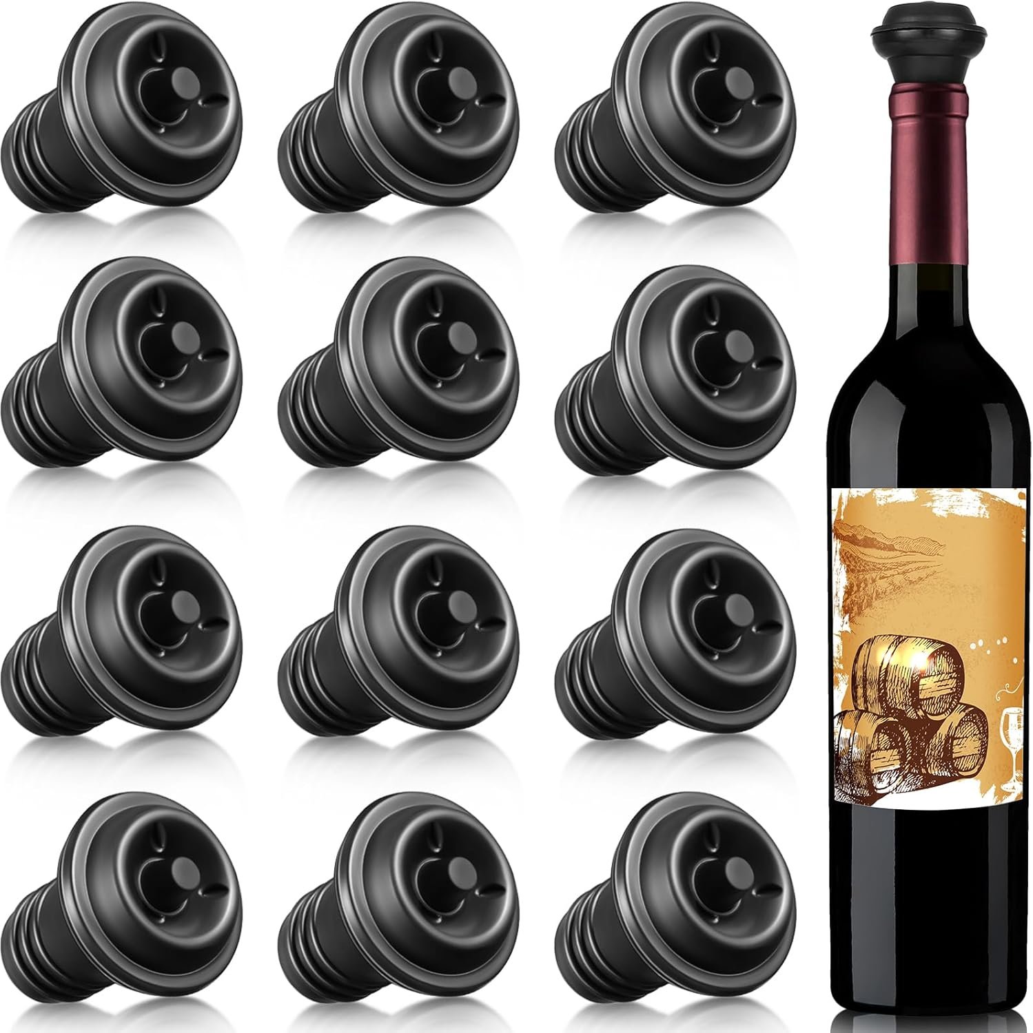 Honoson 12 tapones de vino resellables con bomba de silicona al vacío, práctico para suministros de cocina, herramientas de botella negro
