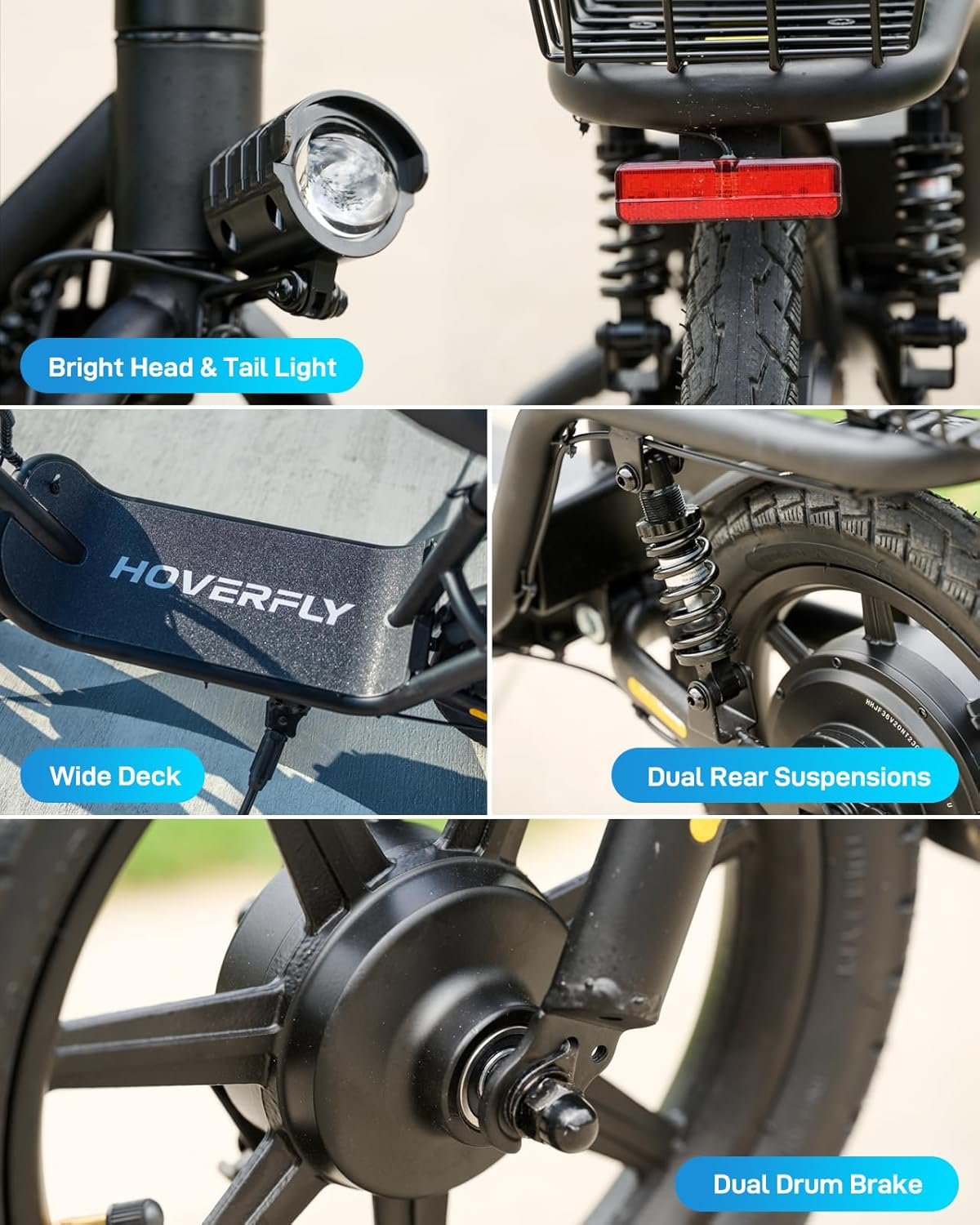 Potente rendimiento y conducción suave: el scooter eléctrico Hoverfly Z5 cuenta con un robusto motor de 400 W y grandes ruedas de 14 pulgadas, asegurando un paseo suave incluso en terrenos irregulares a velocidades de hasta 15.5 mph. Sus neumáticos neumáticos, cubos de rueda duraderos de una sola pieza y marco de acero de alta resistencia pueden soportar ciclistas de hasta 265 libras, proporcionando confiabilidad y estabilidad.