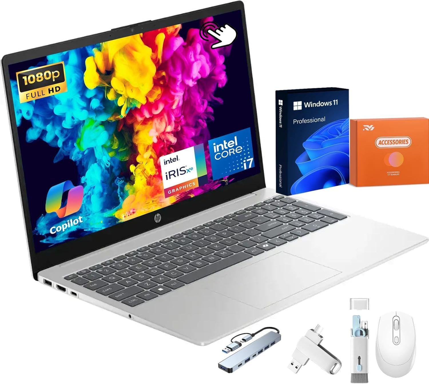 HP Laptop empresarial con pantalla táctil 2025, LED FHD de 15.6 pulgadas, Intel 13ª generación i7-1355U, gráficos Intel Iris Xe, memoria DDR4 de 64 GB, SSD de 2 TB, ligera y portátil, Copilot AI
