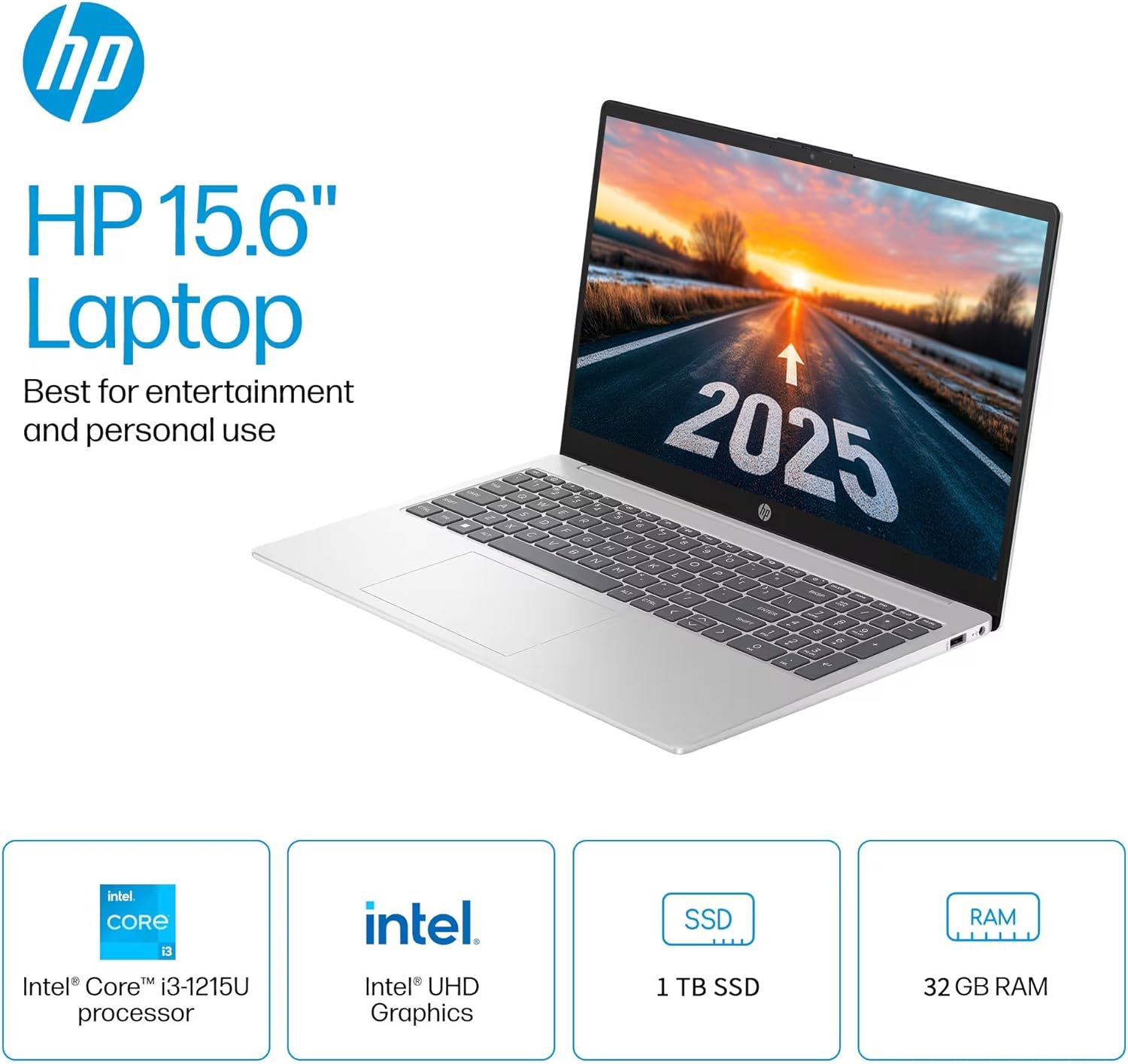 HP Portátil con pantalla táctil de 15,6"e;, con licencia Office Pro Lifetime License, Intel 12th Core i3-1215U hasta 4,4 GHz, 32 GB de RAM, 1 TB SSD, gráficos Intel UHD, antirreflejo, Windows 11 Pro