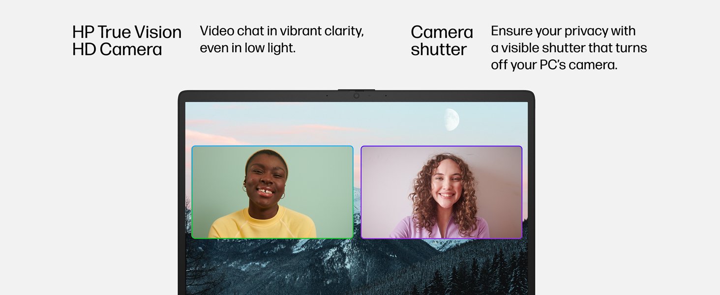 HP Cámara HD de visión verdadera: chat de video con una claridad vibrante, incluso con poca luz, y hace que cada conversación sea una experiencia cara a cara para una mejor manera de mantenerse en contacto y mantenerse seguro con un obturador físico de cámara que puedes cerrar