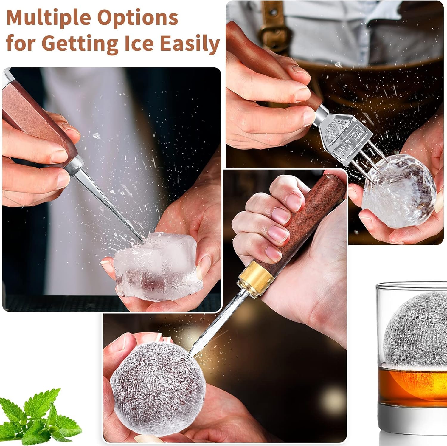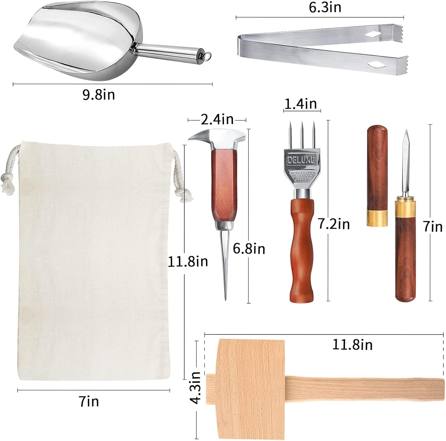 Juego de gran valor: contiene 1 palillo de hielo de 7 pulgadas de largo con extremo de martillo, 1 palillo de hielo de tres puntas de 7.2 pulgadas de largo, 1 palillo de hielo de 6 pulgadas de largo con tapa, 1 bolsa de hielo Lewis, 1 martillo de madera de 12 pulgadas, 1 pala de hielo de acero inoxidable de 4 onzas y 1 pinza de hielo de acero inoxidable. Es una herramienta de bartenders profesionales de tamaño perfecto.