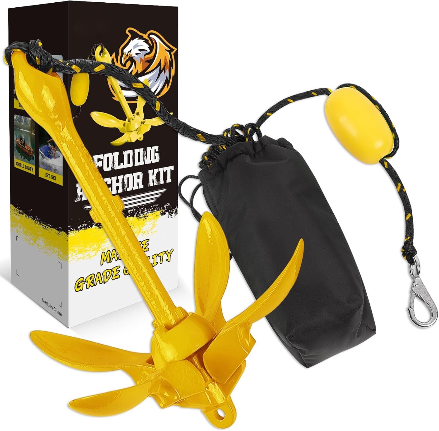 - Kit completo de anclaje: nuestro kit incluye una cuerda de 40 pies, gancho fijo de acero inoxidable y boya de polipropileno para anclaje en aguas poco profundas y profundas. Evita la pérdida de cuerda y conecta cómodamente tu barco con ea