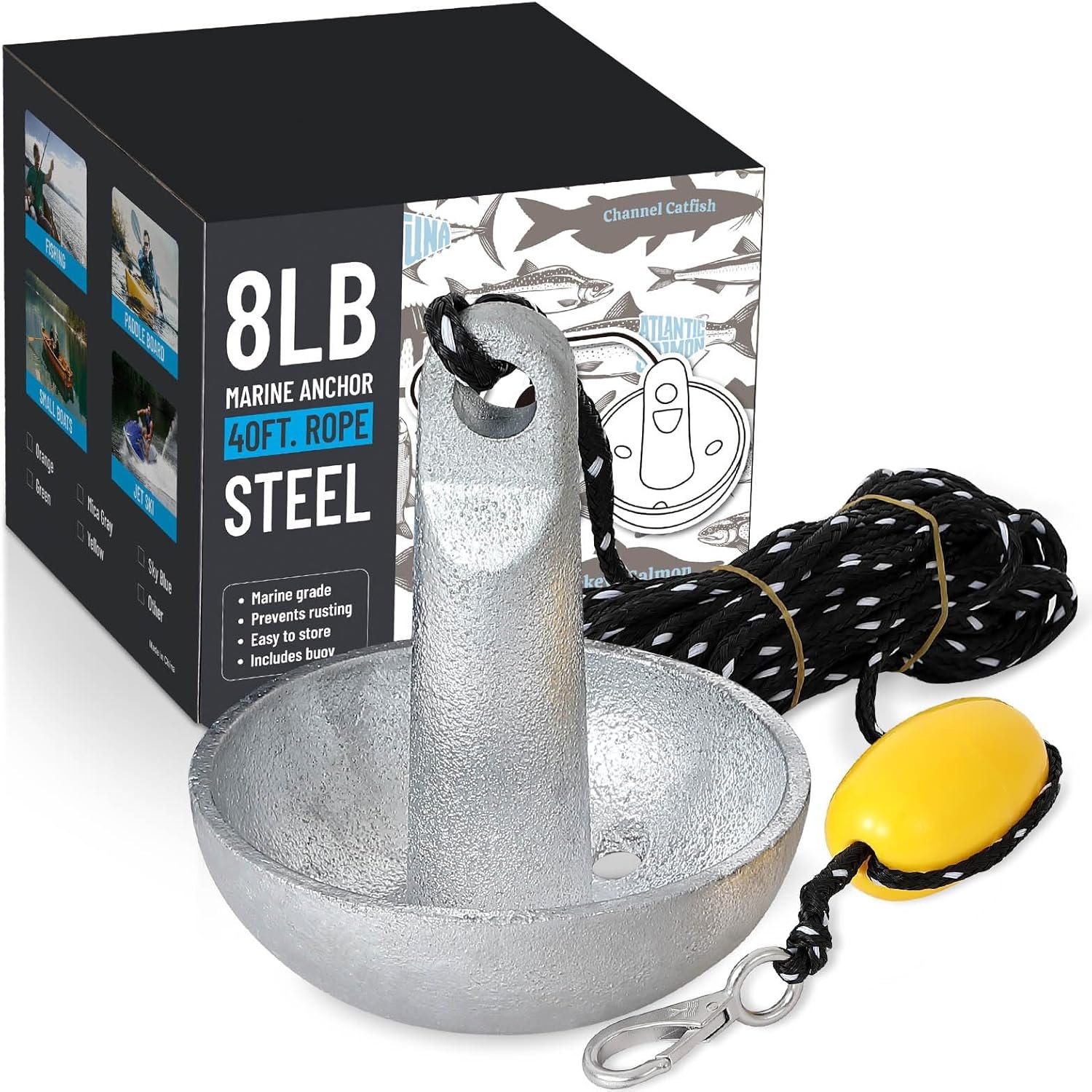 - Calidad de grado marino: nuestro anclaje de 8 libras está hecho de acero al carbono de alta calidad con un revestimiento galvanizado resistente al óxido, lo que garantiza una durabilidad superior tanto en entornos de agua dulce como de agua de mar.