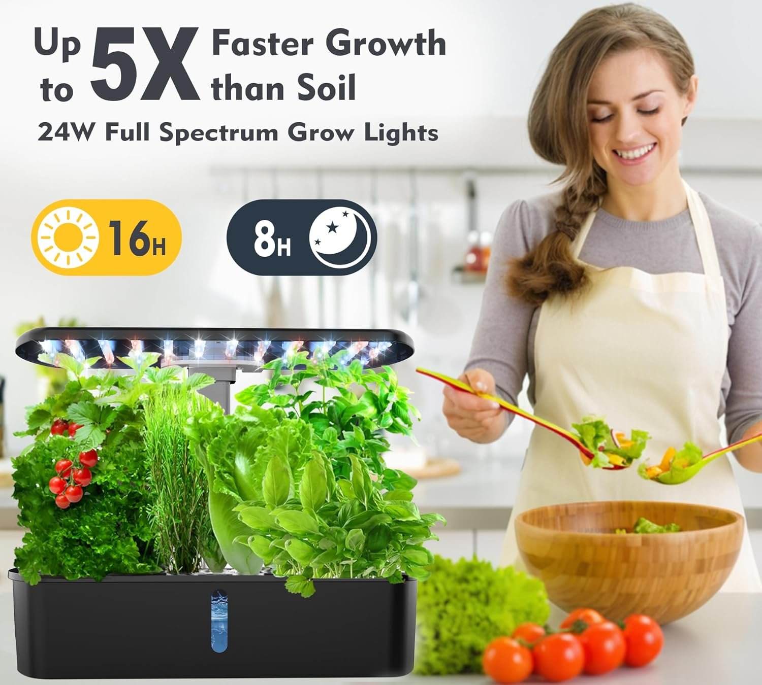 CALIDAD Y SERVICIO PRIMERO: Construido pensando en la calidad y la durabilidad, cada jardín interior inteligente viene con 2 años de servicio. Se incluye un manual fácil de seguir para ayudarlo a comenzar con este jardín hidráulico. Disfruta de este sistema de jardinería hidropónica inteligente