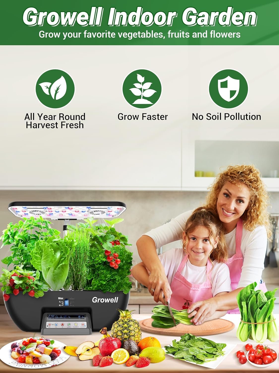 Jardín interior ideal: el jardín de hierbas de interior Growell ofrece dos modos de luz: modo vegetal y modo de frutas de flores, que se adaptan a todas tus preferencias de plantación, ya sean verduras, frutas, hierbas o flores. Con unas impresionantes 17 vainas, puedes cultivar más plantas a la vez. El poste de luz ajustable de 7.6 a 23.8 pulgadas soporta plantas en diferentes etapas de crecimiento. Con la maceta hidropónica Growell puedes disfrutar creciendo incluso durante los fríos meses de invierno cuando el sol está bajo.