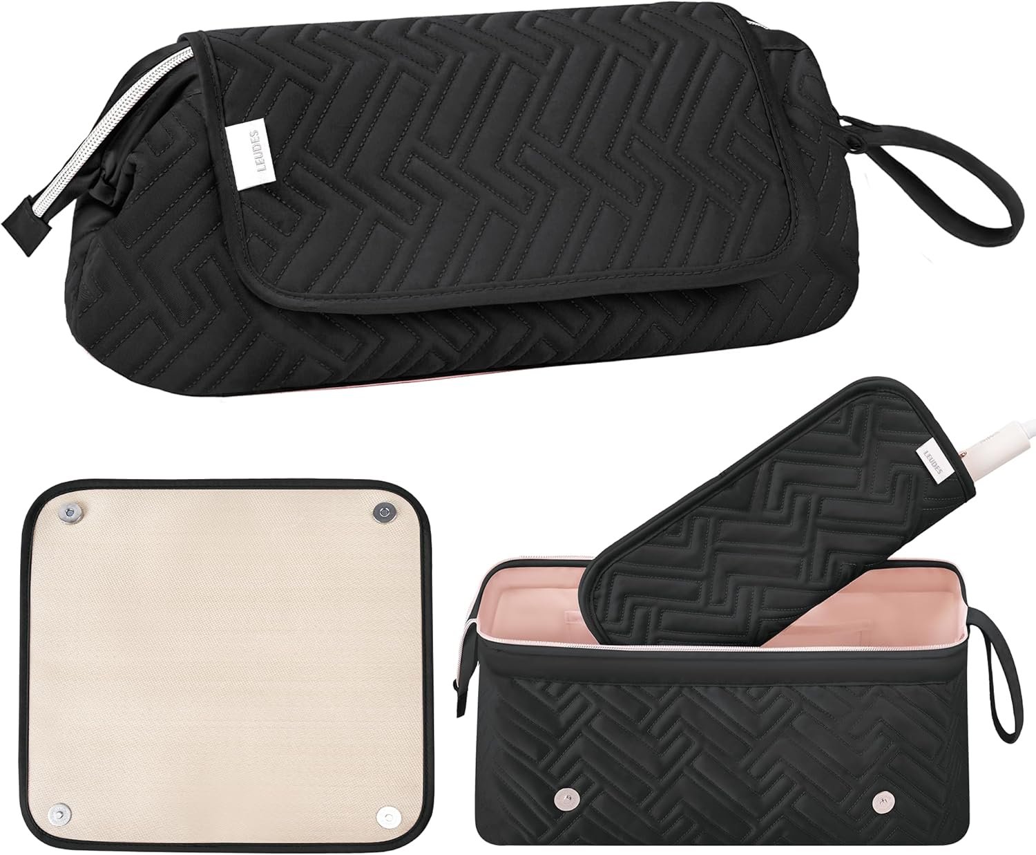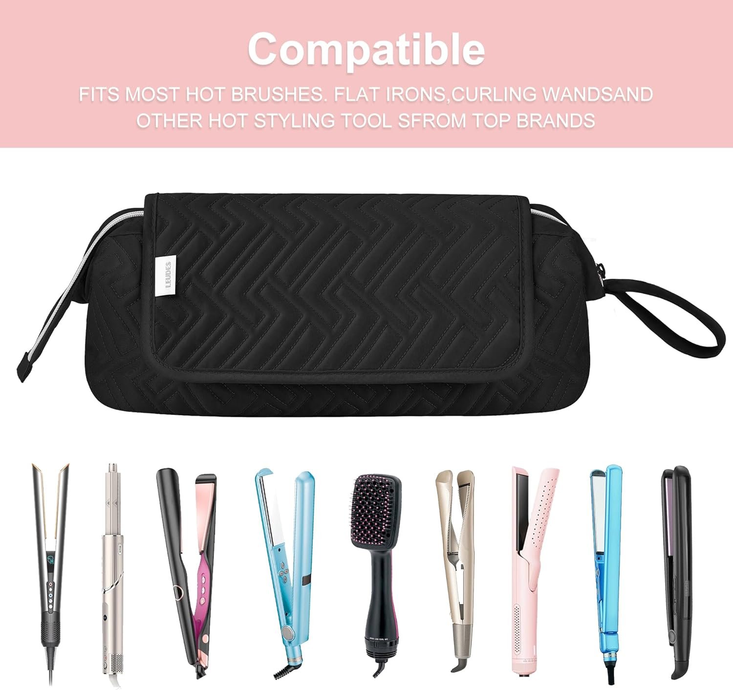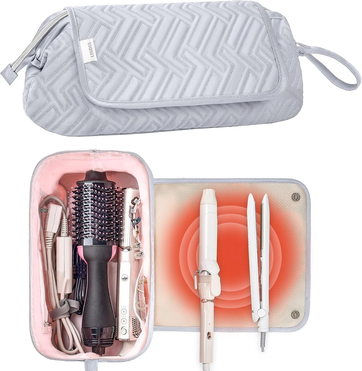 Leudes Bolsa de viaje para mujer, resistente al calor, para artículos esenciales de viaje, alisadores, planchas planas, rizadores, cepillos de aire caliente y secador de pelo, bolsas organizadoras 2