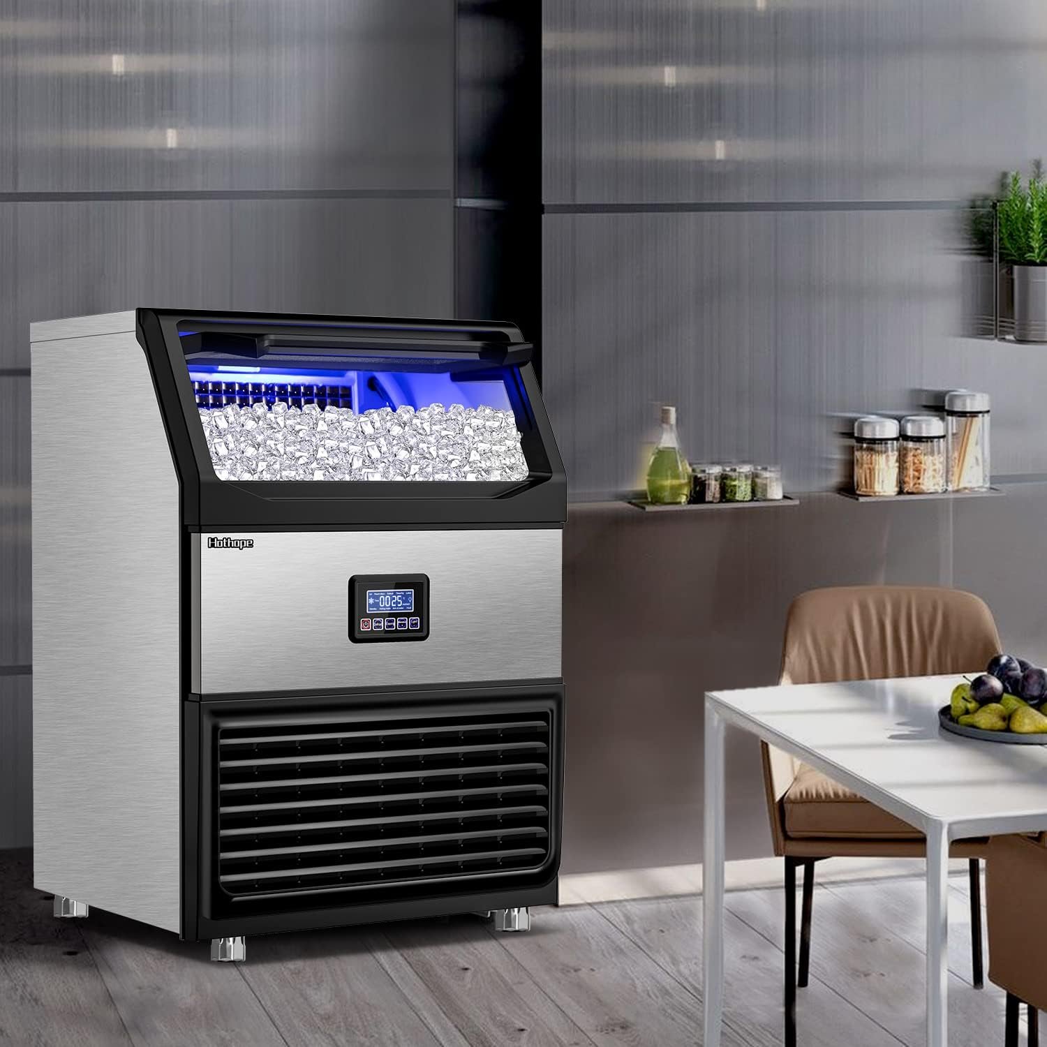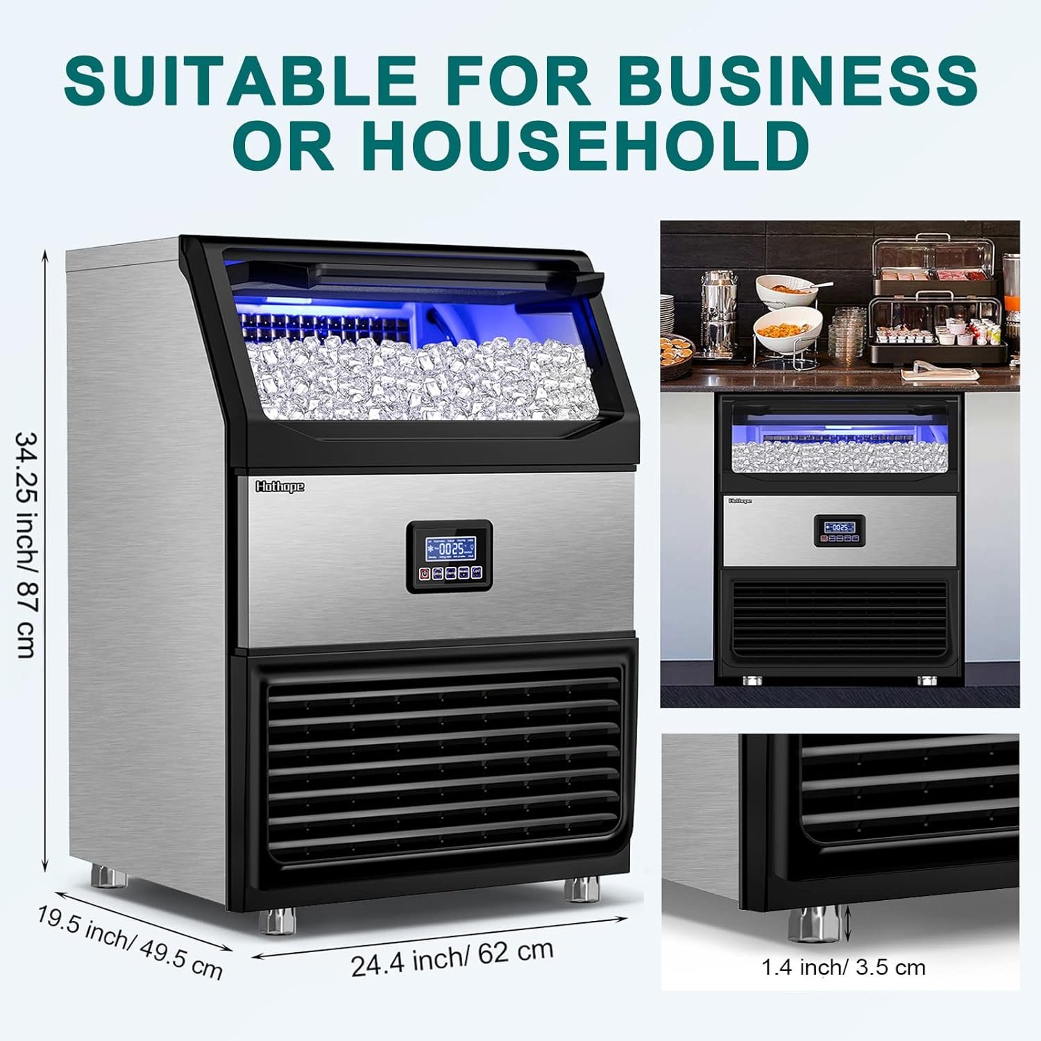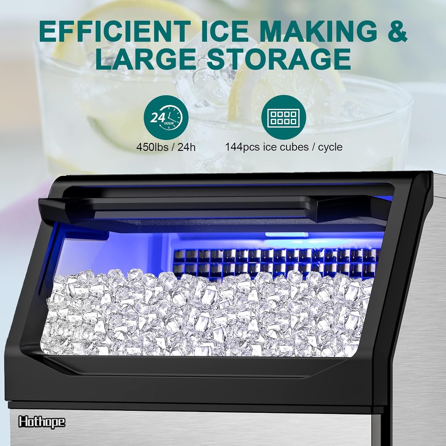Máquina comercial para hacer hielo de 450 libras/24 horas con contenedor de almacenamiento de hielo grande de 77 libras, 144 cubos de hielo transparentes en 11 minutos, máquina de hielo industrial de
