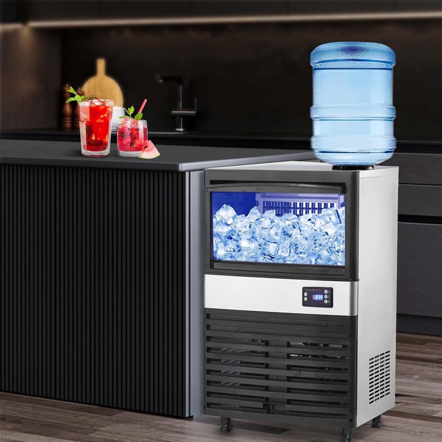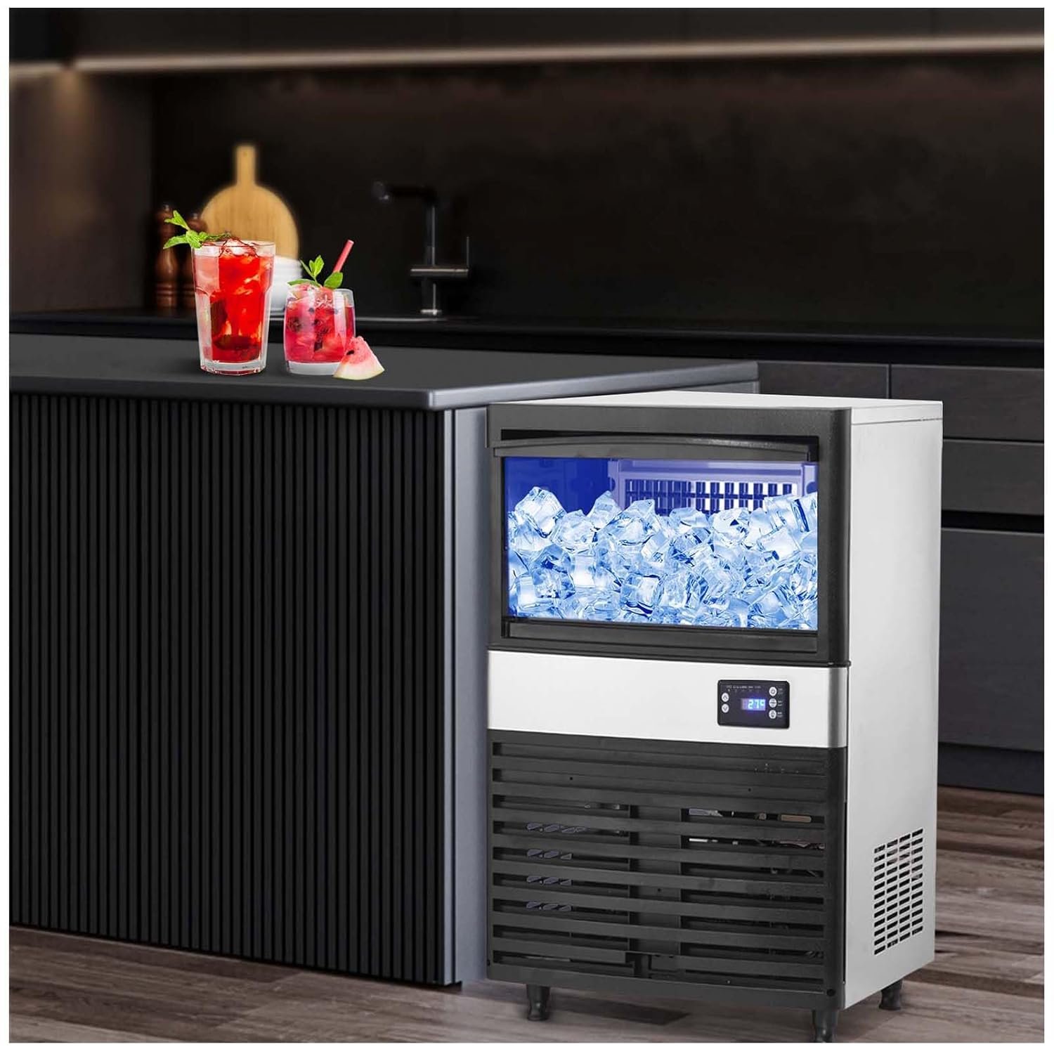 Máquina comercial para hacer hielo, máquina de hielo de acero inoxidable de 120 libras/24 horas con capacidad de almacenamiento de hielo de 30 libras, máquina de hielo independiente para el hogar,