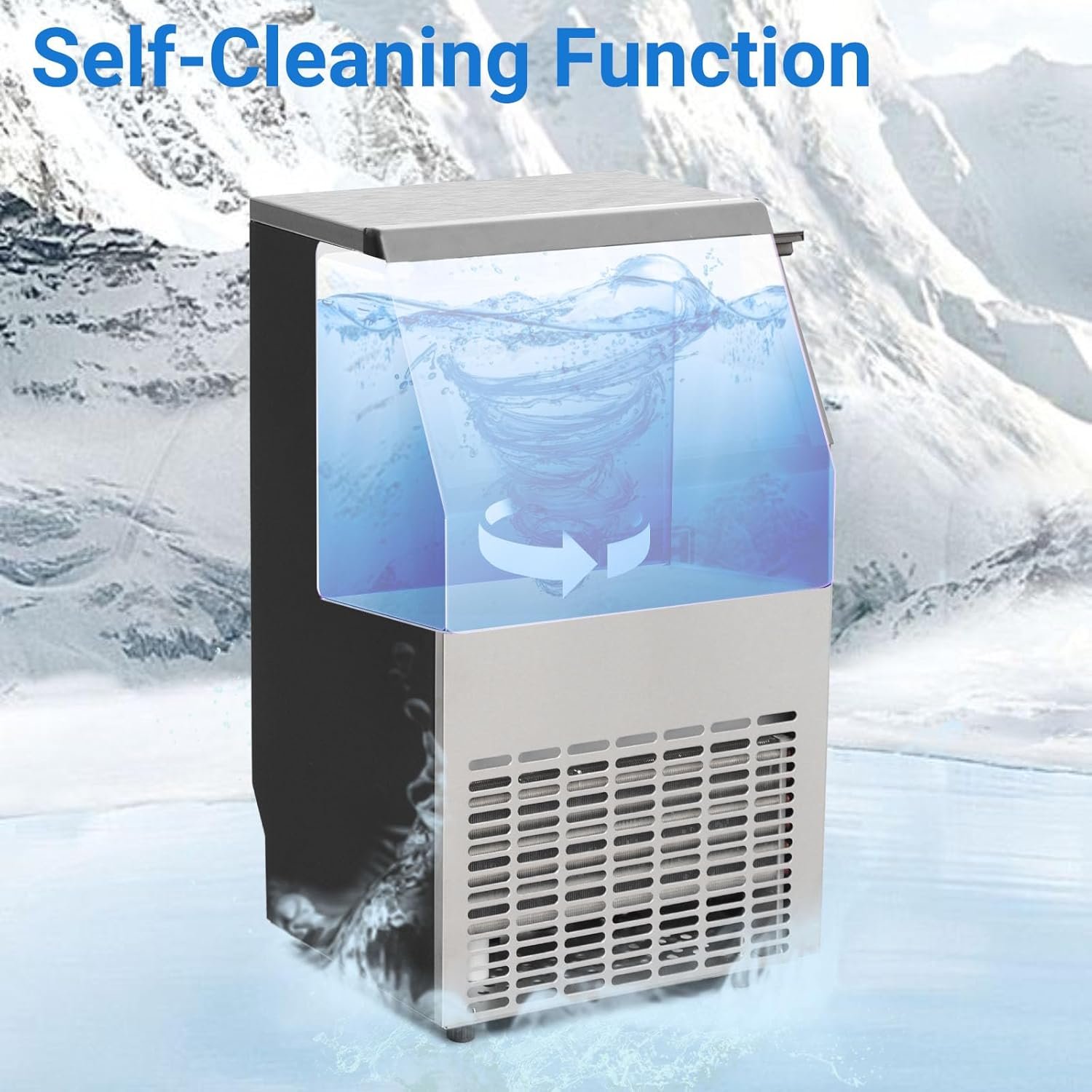 Máquina de hielo comercial, 99 libras/24 horas, máquina de hielo independiente de limpieza automática con hielo de fabricación rápida, acero inoxidable, plata