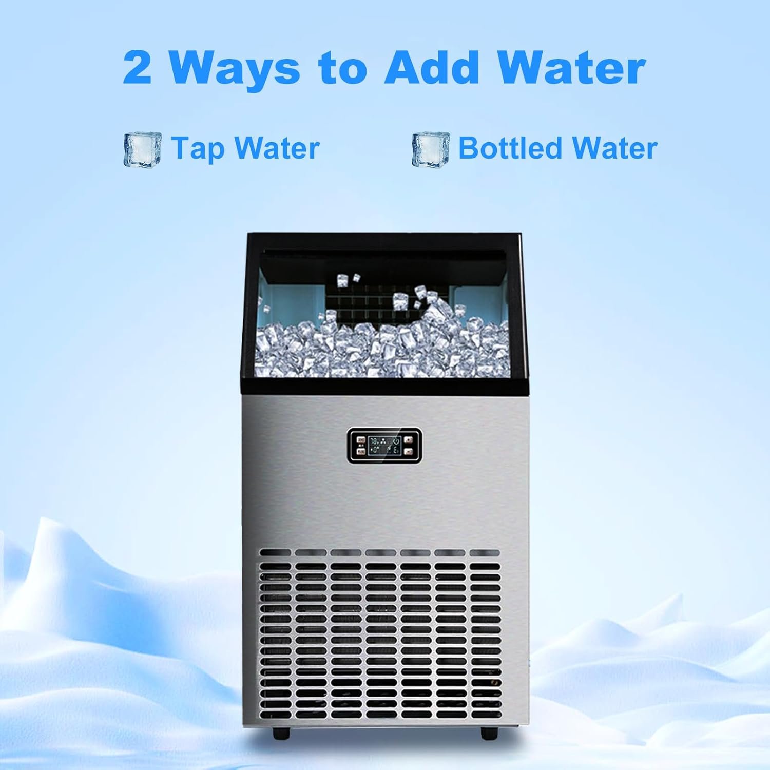 Máquina de hielo comercial de 110 libras/24 horas, máquina de hielo de acero inoxidable con capacidad de almacenamiento de hielo de 27 libras, máquina de hielo independiente con panel LCD