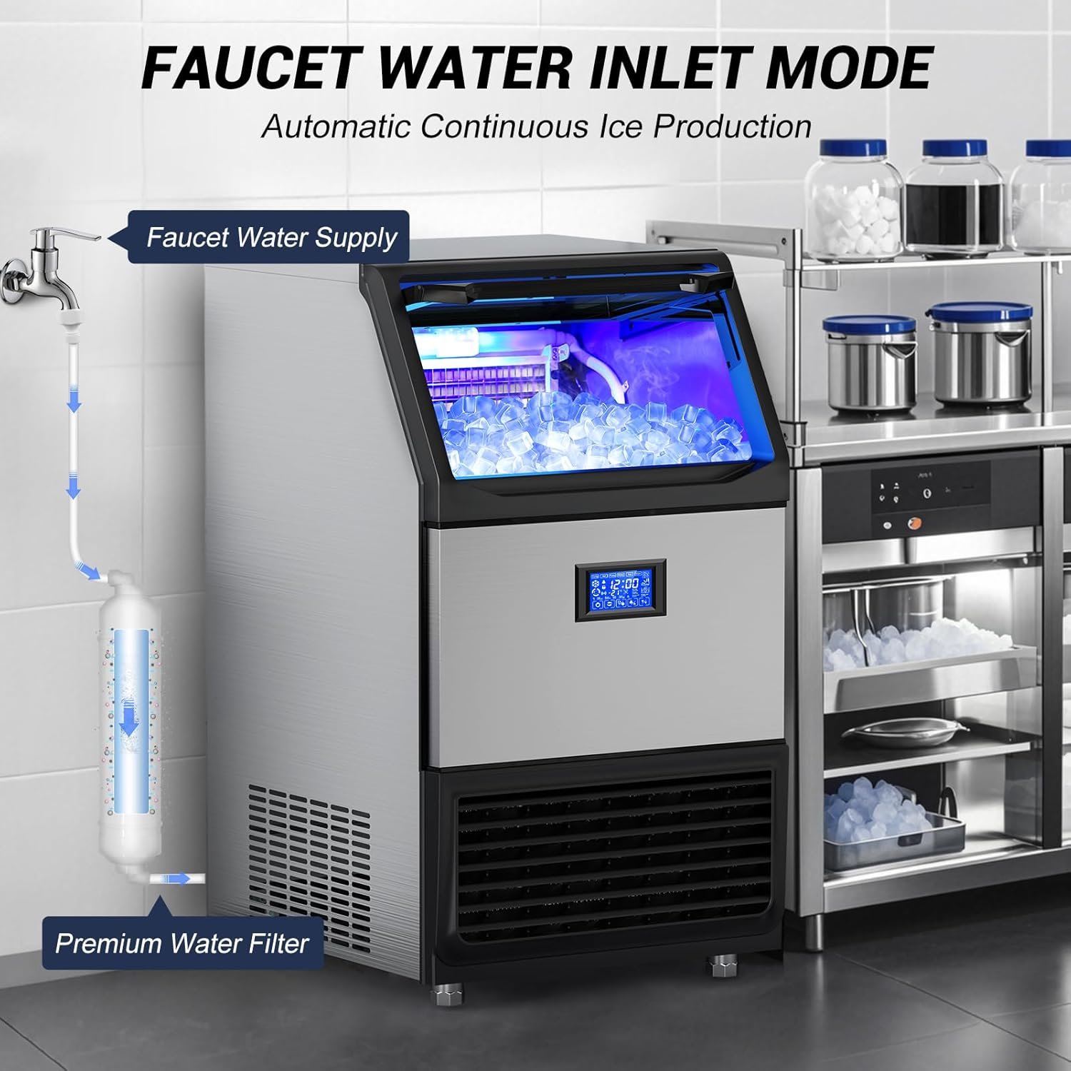 Máquina de hielo comercial debajo del mostrador de 450 libras/24 horas con contenedor de almacenamiento grande de 160 libras, máquina de hielo independiente de acero inoxidable para el hogar, bar