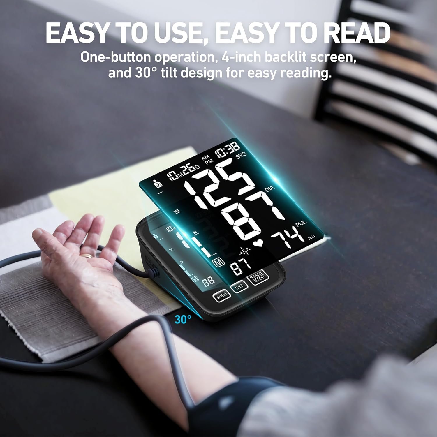 Máquina de presión arterial para uso doméstico: 3 tamaños de puños, pequeño de 7 a 9 pulgadas, mediano/grande de 9 a 17 pulgadas y XL extra grande de 13 a 21 pulgadas, monitor digital preciso