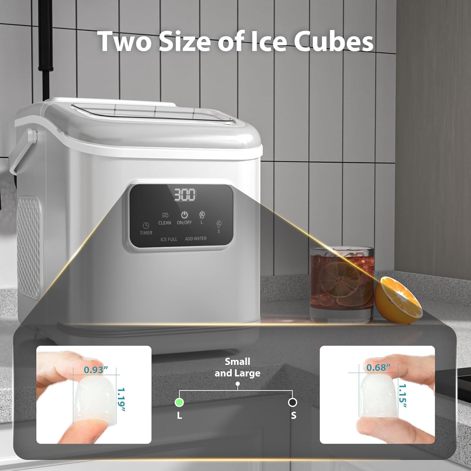 Máquina para hacer hielo para encimera, autolimpiante, portátil, compacta, pequeña, máquina de hielo con pantalla digital, 9 cubos en 6 minutos, 26 libras en 24 horas, para campamento,