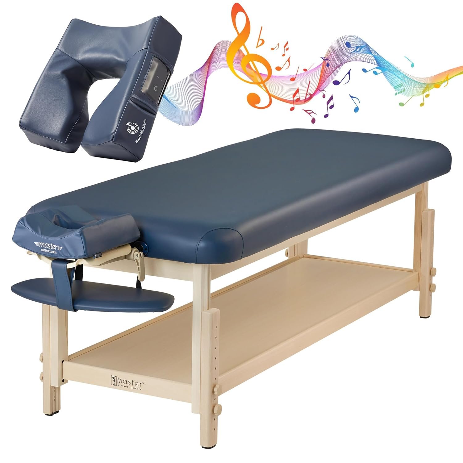Master Massage Laguna – Mesa de masaje estacionaria de 30 pulgadas, paquete de cama de belleza con cojín ergonómico extra MusicMaster con sonido de ensueño, color azul rey