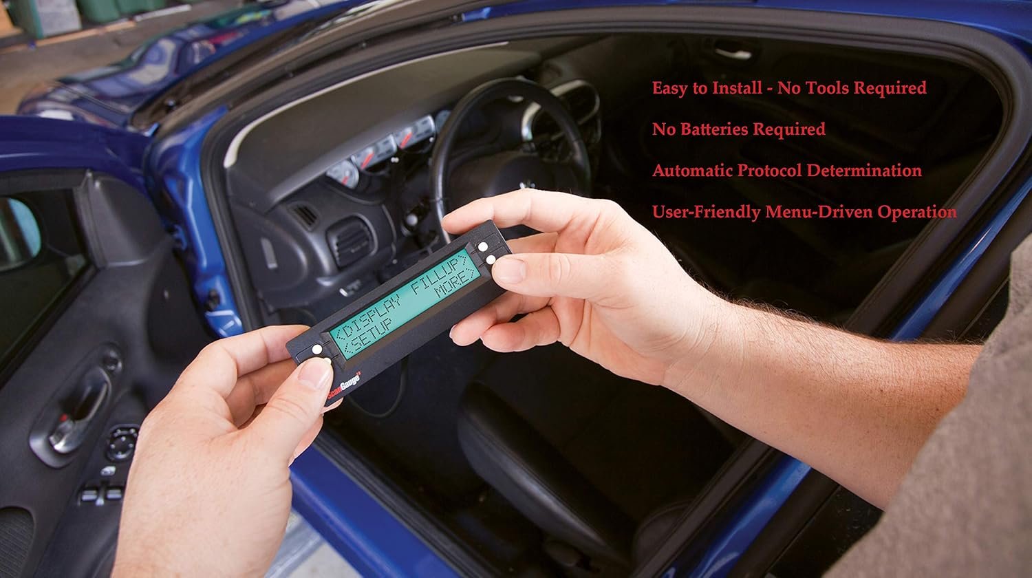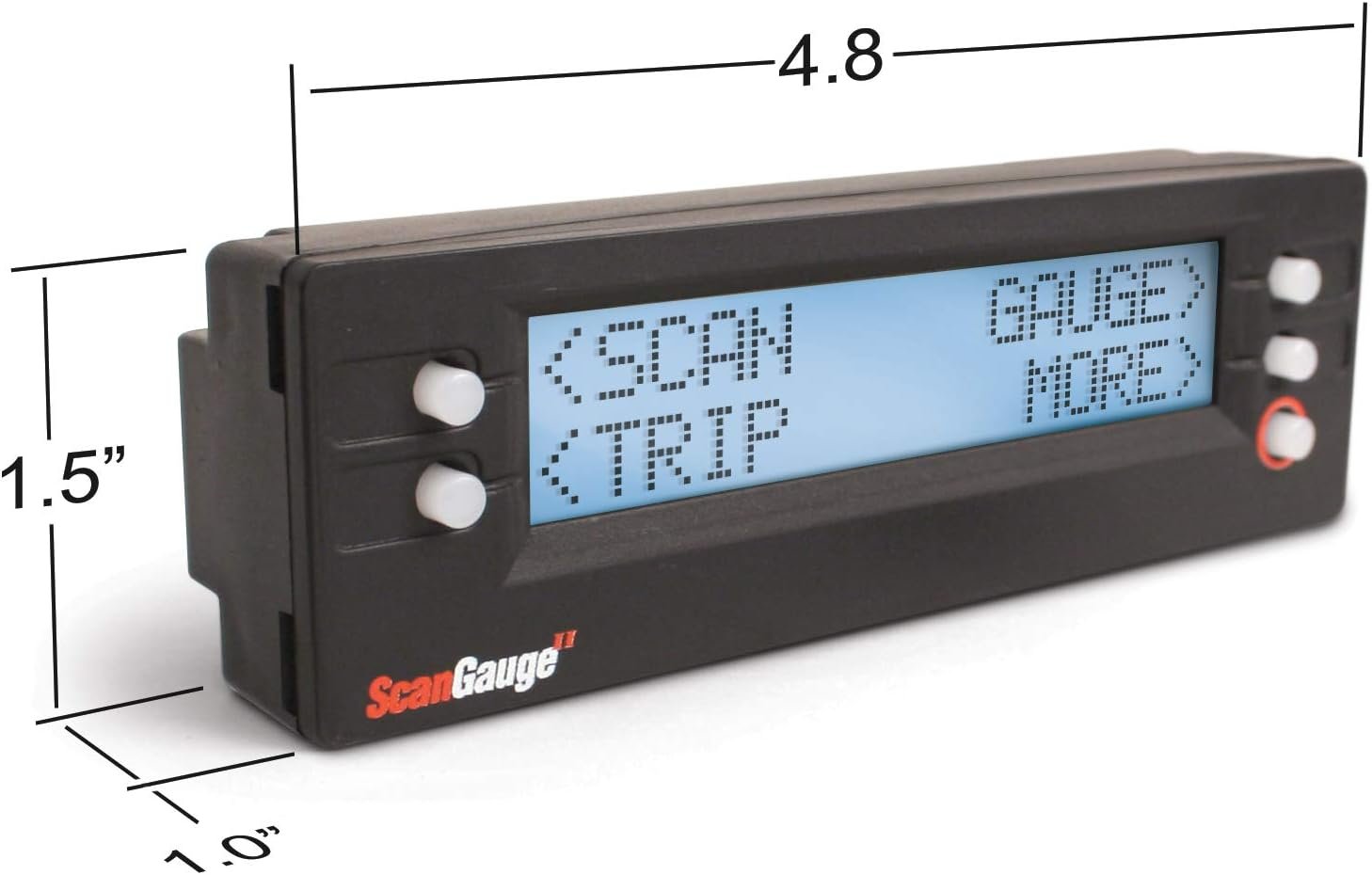 - Observe el consumo de combustible, el costo por milla, la temperatura del refrigerante, la velocidad del motor, los caballos de fuerza y mucho más en tiempo real. La simple operación de 5 botones le permite acceder rápida y fácilmente a las potentes funciones del ScanGauge.