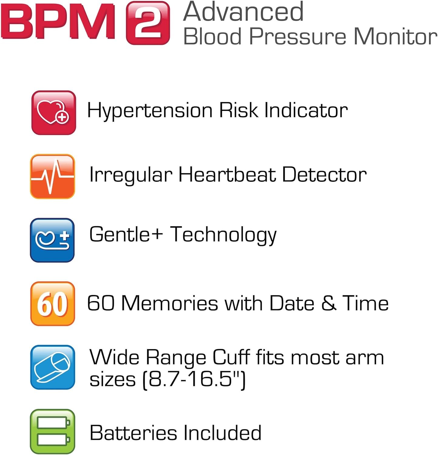 Microlife BPM2 – Monitor digital automático de presión arterial en la parte superior del brazo, puño de amplio rango que se adapta a la mayoría mediano – grande hasta 16.5 pulgadas, almacena 60