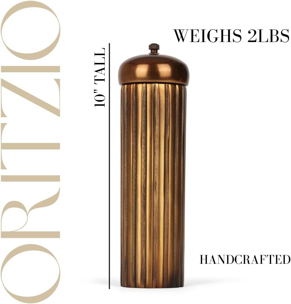 Lujo que puedes sentir: con un peso sólido de 2 libras y mide 10 pulgadas de alto, este molinillo de pimienta dorado hecho a mano está diseñado para impresionar, combinando un rendimiento pesado con una elegancia atemporal.