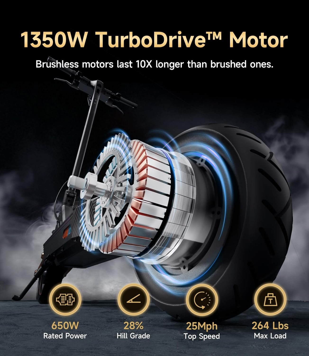 Potencia de 1350 W – Conquista el terreno urbano como nunca antes: Siente la emoción del potente motor de alto rendimiento de 1350 W de este potente scooter, ya que aborda sin esfuerzo el 28% de inclinaciones, incluso con un piloto de 264 libras. Alcanza velocidades de hasta 25 mph 24.9 mi/h, un 40% más rápido que los scooters estándar, mientras disfruta de una aceleración suave perfecta para navegar por calles concurridas de la ciudad o aventuras de fin de semana.