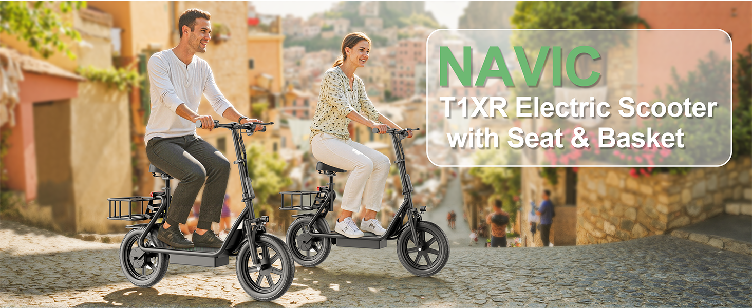 NAVIC T1XR Electric Scooter Adults,21-27Mile Range,Electric Scooter for Adults,Top Speed 22Mph,500W Motor,14'' Pneumatic Tires,Foldable e Scooter with Back Basket,APP