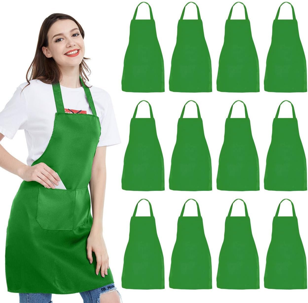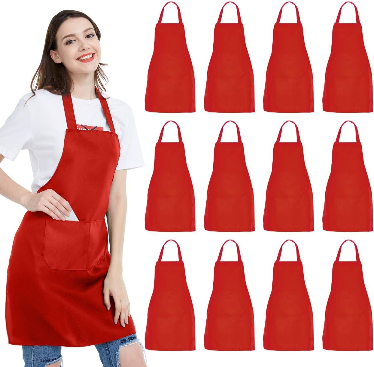 NOBONDO Paquete de 12 delantales con peto, delantal unisex negro a granel con 2 bolsillos espaciosos, lavable a máquina para cocina, manualidades, barbacoa, dibujo